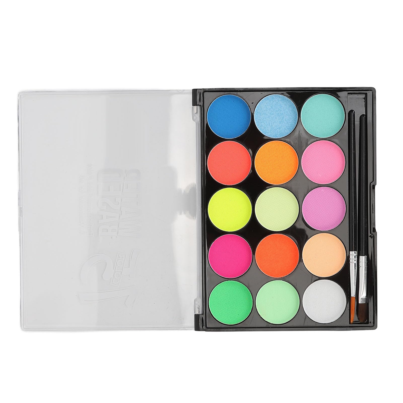 1. Water-based texture: The paint designs can be applied directly for makeup effects or with a damp brush for more vibrant and saturated colors. The quick-drying ingredients won't smudge or rub off upon contact. 2. 15 colors: Offering vivid and richly saturated colors, this kit not only ensures clear gradient levels but also provides waterproof and sweat-resistant paint. The kit includes a palette of 15 colors, perfect for creating a variety of intricate designs. 3. Safe and skin-friendly: This paint kit meets cosmetic quality standards. It is odorless and gentle on the skin, so it can be safely used by children and adults without causing skin damage. 4. Comes with 2 makeup brushes: The kit comes with a set of makeup brushes for easy application and excellent makeup results. Easy to clean, leaves no residue, and can be easily washed off with water or wipes. 5. Wide range of uses: for body and face painting on various occasions, such as Halloween, Christmas, cosplay, parties, art shows, DIY face painting, face painting instruction, etc. Specification: Item Type: Face Paint Kit Texture: Paste-like liquid Quantity: 2g per color, 15 colors, 30g total Use: Face and body painting Features: Easy to apply, washable, skin-safe SAFETY WARNING This product does not pose any safety risks15 Colors: Offering vibrant and richly saturated colors, this kit not only guarantees clear gradient levels but also provides waterproof and sweat-resistant paint. The kit includes a 15-color palette, perfect for creating a variety of intricate designs. Comes with 2 Makeup Brushes: The kit comes with a set of makeup brushes for easy application and excellent makeup results. Easy to clean, leaves no residue, and can be easily washed with water or wipes. Safe and Gentle on Skin: This paint kit meets cosmetic quality standards. It is odorless and gentle on the skin, so it can be safely used by children and adults without causing skin damage. Water-Based Texture: The paint designs can be applied directly for makeup effects or with a damp brush for more vibrant and saturated colors. The quick-drying ingredients won't smudge or rub off upon contact. Wide range of uses: for body painting and face painting on various occasions, such as Halloween, Christmas, cosplay, parties, art shows, DIY face painting, face painting instruction, etc.Kit de Peinture pour le Visage pour Enfants, 15 Couleurs, à Base D'eau, Palette de Peinture Corporelle, Kit de Maquillage Lavable, Fête Cosplay Halloween, 30g (Tapez B)DESCRIPTION DU PRODUIT DESCRIPTION DU PRODUIT 1. Texture à base d'eau : les motifs de peinture peuvent être appliqués directement pour des effets de maquillage ou avec un pinceau humide pour des couleurs plus vives et saturées. Les ingrédients à séchage rapide ne tacheront pas et ne frotteront pas au toucher. 2. 15 couleurs : offrant des couleurs vives et richement saturées, ce kit garantit non seulement des niveaux de dégradé clairs, mais fournit également une peinture imperméable et résistante à la transpiration. Le kit comprend une palette de 15 couleurs, parfaite pour créer une variété de designs complexes. 3. Sûr et respectueux de la peau : ce kit de peinture répond aux normes de qualité cosmétique. Il est inodore et doux pour la peau, il peut donc être utilisé en toute sécurité par les enfants et les adultes sans endommager la peau. 4. Livré avec 2 pinceaux de maquillage : le kit est livré avec un ensemble de pinceaux de maquillage pour une application facile et d'excellents résultats de maquillage. Facile à nettoyer, ne laisse aucun résidu et peut être facilement lavé avec de l'eau ou des lingettes. 5. Large gamme d'utilisations : pour la peinture corporelle et la peinture faciale dans diverses occasions, telles que Halloween, Noël, le cosplay, les fêtes, les spectacles artistiques, la peinture faciale DIY, l'enseignement de la peinture faciale, etc. Spécification: Type d'article : kit de peinture pour le visage Texture : liquide pâteux Quantité : 2 g par couleur, 15 couleurs, total 30 g Utilisation : peinture pour le visage, le corps. Caractéristiques : Facile à appliquer, lavable, sans danger pour la peau AVERTISSEMENT DE SÉCURITÉ Ce produit ne présente aucun risque pour la sécurité15 couleurs : offrant des couleurs vives et richement saturées, ce kit garantit non seulement des niveaux de dégradé clairs, mais fournit également une peinture imperméable et résistante à la transpiration. Le kit comprend une palette de 15 couleurs, parfaite pour créer une variété de designs complexes. Livré avec 2 pinceaux de maquillage : le kit est livré avec un ensemble de pinceaux de maquillage pour une application facile et d'excellents résultats de maquillage. Facile à nettoyer, ne laisse aucun résidu et peut être facilement lavé avec de l'eau ou des lingettes. Sûr et doux pour la peau : ce kit de peinture répond aux normes de qualité cosmétique. Il est inodore et doux pour la peau, il peut donc être utilisé en toute sécurité par les enfants et les adultes sans endommager la peau. TEXTURE À BASE D'EAU : Les motifs de peinture peuvent être appliqués directement pour des effets de maquillage ou avec un pinceau humide pour des couleurs plus vives et saturées. Les ingrédients à séchage rapide ne tacheront pas et ne frotteront pas au toucher. Large gamme d'utilisations : pour la peinture corporelle et la peinture faciale dans diverses occasions, telles que Halloween, Noël, le cosplay, les fêtes, les spectacles artistiques, la peinture faciale DIY, l'enseignement de la peinture faciale, etc.