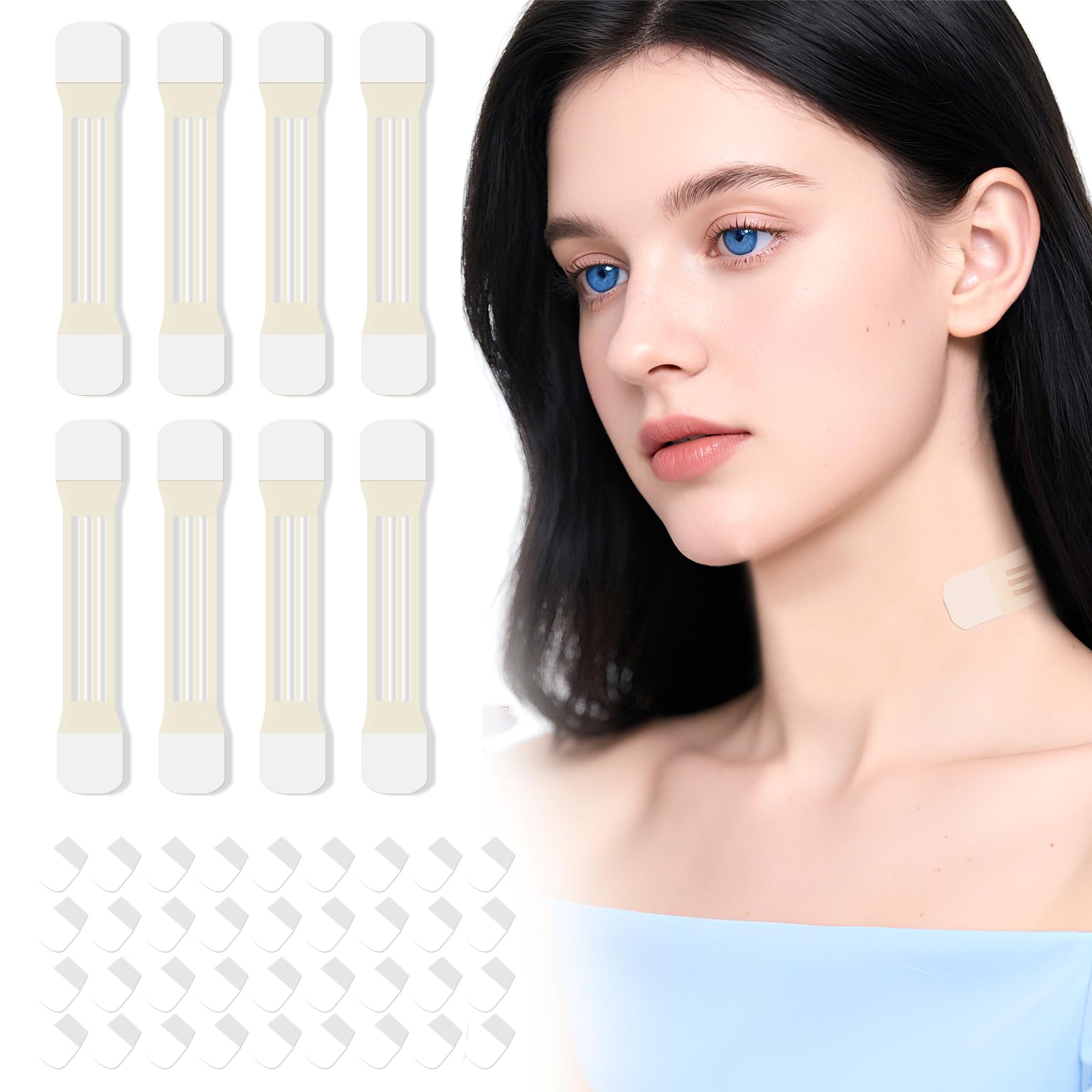Perfect Size for Most Necks: Each strip measures 7.2 x 1.6 inches (18.4 x 4 cm) - the ideal size to provide support while staying discreet. Easy to Use: Simple to apply - just peel and stick for an instant lift effect. Removes cleanly without any sticky residue. Soft Comfortable Wear: Made with gentle, breathable materials that feel light on your skin. Comfortable enough to wear from morning to night without irritation. Keep All Day: Stays perfectly in place through sweat, humidity, and even swimming. No need to worry about it peeling off or losing its hold. Lifts Smooths in Seconds: Gives your neckline a refreshed, more youthful appearance by gently supporting skin. Helps reduce the look of sagging for a naturally firmer effect. Natural Material: Made with ultra-thin material that matches your skin tone. Goes on invisibly so no one can tell you're wearing it - just see smoother-looking skin instantly.