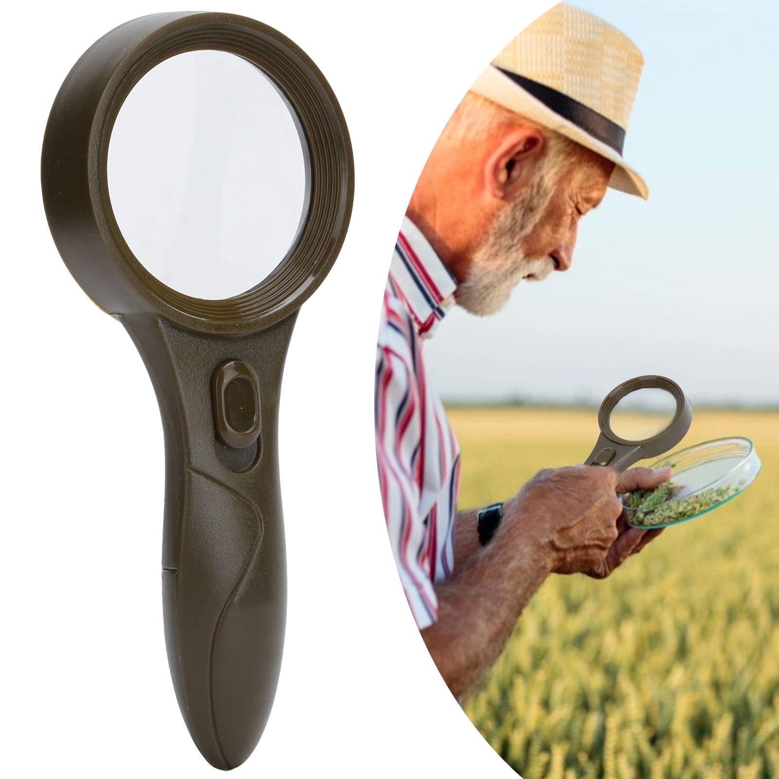 Function: 1. This portable magnifying glass has 6 LED lights, which can give you a better reading experience in the dark or see the information of objects more clearly, especially suitable for people with macular degeneration. 2. Ergonomic handle design, comfortable grip and easy operation, bring you convenience. 3. It is very lightweight and can be easily put in the pocket. It only requires 2 AAA batteries (not included) and can be taken anywhere without having to worry about charging. 4. Not only can it bring children fun exploring nature, but it can also help the elderly to read newspapers or books. Specification: Condition: 100 new Item Type: Magnifying Glass Material: ABS, glass lens Magnification: 5 times Mirror surface diameter: approx. 65 mm 2.6 inches Power Mode: 2 x AAA Batteries (not included) Precautions: 1. Do not place this product near fire sources or high temperature locations sometimes heat may cause the lens or frame to be deformed or deteriorated. 2. Do not drop, bend or hit the magnifying glass with force. Cutting off the lens is very dangerous. 3. If glasses become dirty, use a soft cloth or facial tissue suitable for glasses and gently wipe the lens clean. Package list: 1 x Magnifying Glass Note: 1. Please allow slight error due to manual measurement. Thank you for your understanding. 2. Monitors are not calibrated same, item color displayed in photos may be showing slightly different from the real object. Please take the real one as standard.Ergonomic handle design, comfortable grip and easy operation, bring you convenience. Simple and stylish appearance, beautiful and practical. Made of high quality material, sturdy and durable in use. It can not only make children fun about nature exploration, but also help the elderly to read newspapers or books. It is very lightweight and can be easily put in the pocket. It only requires 2 AAA batteries (not included) and can be taken anywhere without having to worry about charging. This handheld magnifying glass has 6 LED lights, giving you a better reading experience in the dark or seeing the information of objects more clearly, especially suitable for people with macular degeneration.5X handheld vergrootglas, handbediend antisliphandvat Foto-elektrisch leesvergroter, 6 led-vergrootglas, valutadetectorlampjes (zonder batterijen) Functie: 1. Dit draagbare vergrootglas heeft 6 LED-lampjes, waardoor u in het donker een betere leeservaring krijgt of de informatie van objecten duidelijker kunt zien, vooral geschikt voor mensen met maculaire degeneratie. 2. Ergonomisch handvatontwerp, comfortabele grip en eenvoudige bediening, brengen u gemak. 3. Het is zeer licht van gewicht en kan gemakkelijk in de zak worden gestoken. Hij heeft slechts 2 AAA-batterijen nodig (niet inbegrepen) en kan overal mee naartoe worden genomen zonder dat u zich zorgen hoeft te maken over opladen. 4. Het kan kinderen niet alleen plezier bezorgen bij het verkennen van de natuur, maar het kan ouderen ook helpen kranten of boeken te lezen. Specificatie: Staat: 100 nieuw Artikeltype: vergrootglas Materiaal: ABS, glazen lens Vergroting: 5 keer Diameter spiegeloppervlak: ca. 65 mm 2,6 inch Voedingsmodus: 2 x AAA-batterijen (niet inbegrepen) Voorzorgsmaatregelen: 1. Plaats dit product niet in de buurt van vuurbronnen of locaties met hoge temperaturen soms kan de lens of het frame door hitte worden vervormd of verslechterd. 2. Laat het vergrootglas niet vallen, buig het niet en stoot het vergrootglas niet met kracht. Het afsnijden van de lens is erg gevaarlijk. 3. Gebruik een zachte doek of gezichtsdoekje dat geschikt is voor een bril als deze vuil wordt en veeg de lens voorzichtig schoon. Pakketlijst: 1 x vergrootglas Opmerking: 1. Houd rekening met een kleine fout als gevolg van handmatige meting. Bedankt voor uw begrip. 2. Monitoren zijn niet hetzelfde gekalibreerd, de itemkleur die op foto's wordt weergegeven, kan enigszins afwijken van het echte object. Neem a.u.b. de echte als standaard.Ergonomisch handvatontwerp, comfortabele grip en eenvoudige bediening, brengen u gemak. Eenvoudig en stijlvol uiterlijk, mooi en praktisch. Gemaakt van hoogwaardig materiaal, stevig en duurzaam in gebruik. Het kan niet alleen kinderen leuk maken over natuurverkenning, maar ook ouderen helpen kranten of boeken te lezen. Het is erg licht van gewicht en kan gemakkelijk in de zak worden gestoken. Hij heeft slechts 2 AAA-batterijen nodig (niet inbegrepen) en kan overal mee naartoe worden genomen zonder dat u zich zorgen hoeft te maken over het opladen. Dit handloepglas heeft 6 LED-lampjes, waardoor u in het donker een betere leeservaring krijgt of de informatie van objecten duidelijker kunt zien, vooral geschikt voor mensen met maculadegeneratie.