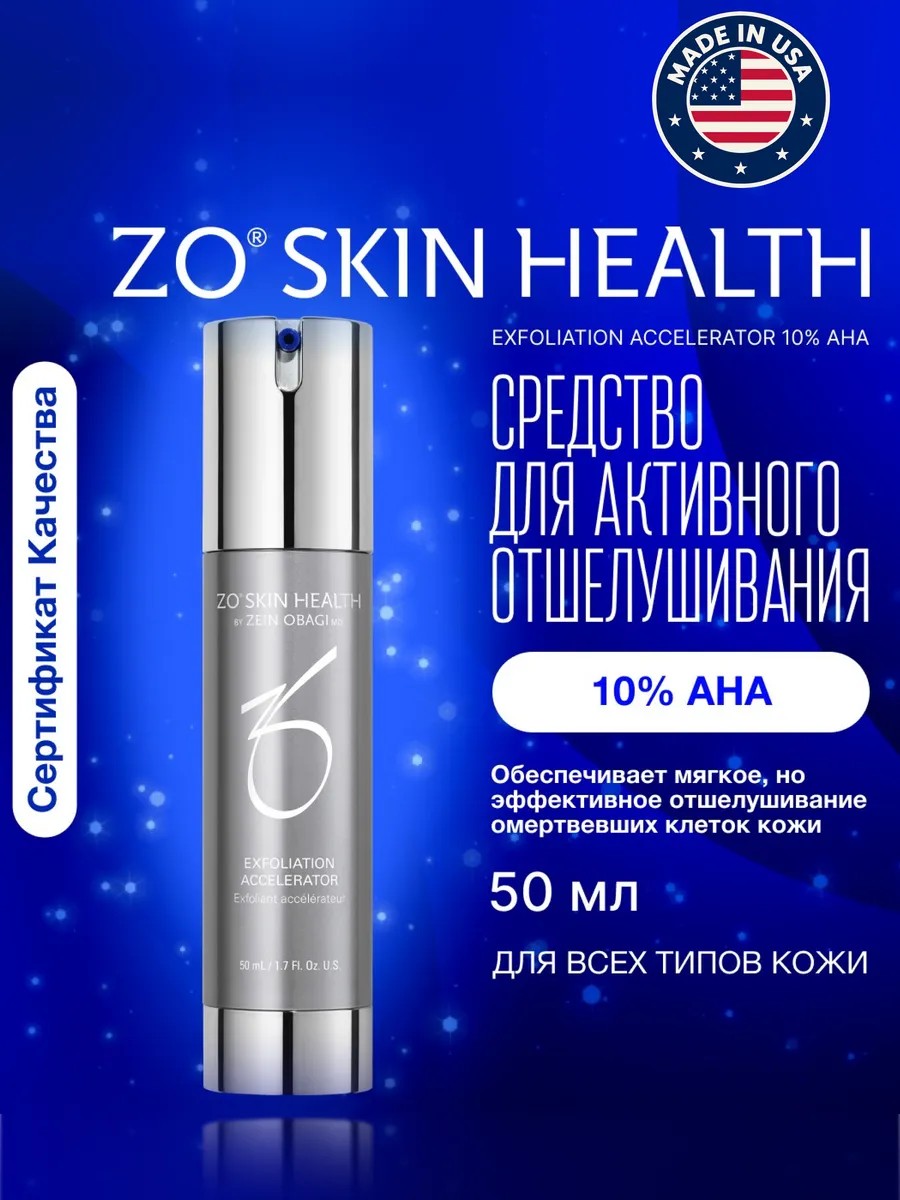 Пилинг для лица с АНА кислотами. Средство для активного отшелушивания Exfoliation Accelerator 10% АHA ZEIN OBAGI - обеспечивает мягкую, но эффективную эксфолиацию, удаляя омертвевшие клетки, которые закупоривают поры и придают коже тусклый цвет, и стимулирует появление новых клеток. Выравнивает толщину рогового слоя, улучшая микрорельеф и тон кожи, смягчает и заживляет поврежденную кожу. Уникальная формула Exfoliation Accelerator улучшает проникновение нанесенных препаратов, заметно смягчает и выравнивает текстуру кожи, лечит акне, корректирует фотоповреждения и возрастные признаки, обладает противовоспалительным действием, ускоряет регенирацию, восстанавливает функцию кожного барьера. Это действительно уникальное средство, которое абсолютно точно стоит попробовать. Доверьтесь нашему многолетнему опыту, и Вы точно не пожалеете. Молодость, красота, ощутимое и видимое здоровье Вашей кожи - мы делаем все это доступным для Вас вместе со всемирно известной премиальной американской косметикой ZO Skin Helth, которая уже более 30 лет является признанным лидером в области профессиональной косметологии. Мы являемся дистрибьютером ZO Skin Health и имеем все необходимые разрешения и сертификаты для продажи косметики на территории РФ. Остерегайтесь подделок. Откройте мир любви и заботы о себе вместе с ZO Skin Helth!