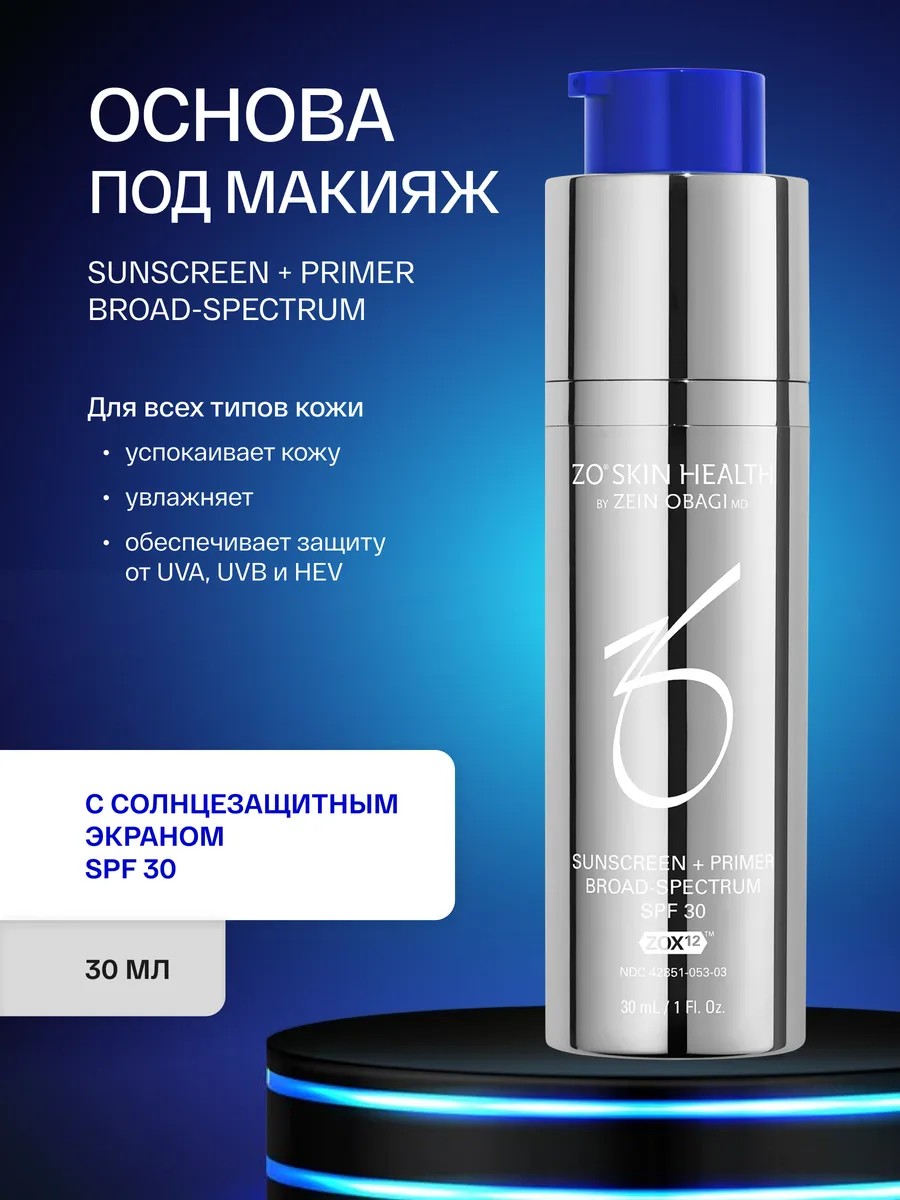 Хотите выглядеть волшебно в любое суток, и чтобы кожа под косметикой чувствовала себя великолепно? Попробуйте потрясающую Основу под макияж с солнцезащитным экраном SPF 30 ZO Skin Health by Zein Obagi. Основа для макияжа обладает тройным мощнейшим защитным действием: предупреждает от ультрафиолетовых лучей; высокоэнергетического видимого света и инфракрасного излучения, а также снижает риск развития рака кожи и предотвращает ее старение. Основа под макияж идеально скрывает недостатки кожи, придает ей шелковистый матовый оттенок, благодаря чему лицо выглядит ухоженным и притягательным. И естественно Основа идеально подходит для любого вида макияжа, прекрасно ложится на лицо, адаптируясь под любой тип кожи, и имеет самую приятную невесомую текстуру. Молодость, красота, ощутимое и видимое здоровье Вашей кожи - мы делаем все это доступным для Вас вместе со всемирно известной премиальной американской косметикой ZO Skin Health, которая уже более 30 лет является признанным лидером в области профессиональной косметологии.