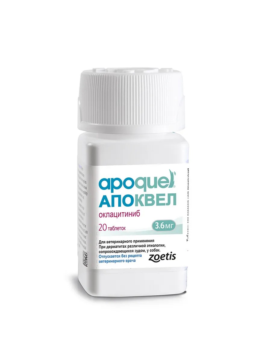 Apoquel 3.6 mg 20 tablets is an effective medication from Zoetis designed to combat allergies in animals. Each package contains 20 tablets, each containing 3.6 mg of the active ingredient. Apoquel 3.6 mg helps quickly relieve allergy symptoms such as itching, redness, watery eyes, and sneezing. This medication is suitable for dogs and cats suffering from various allergies, including pollen, mold, fleas, and other allergens. Apoquel 20 tablets is a convenient dosage form that allows for a full course of treatment. Apoquel for allergies is a reliable aid in the fight against allergies in your pets, helping them feel more comfortable and active.