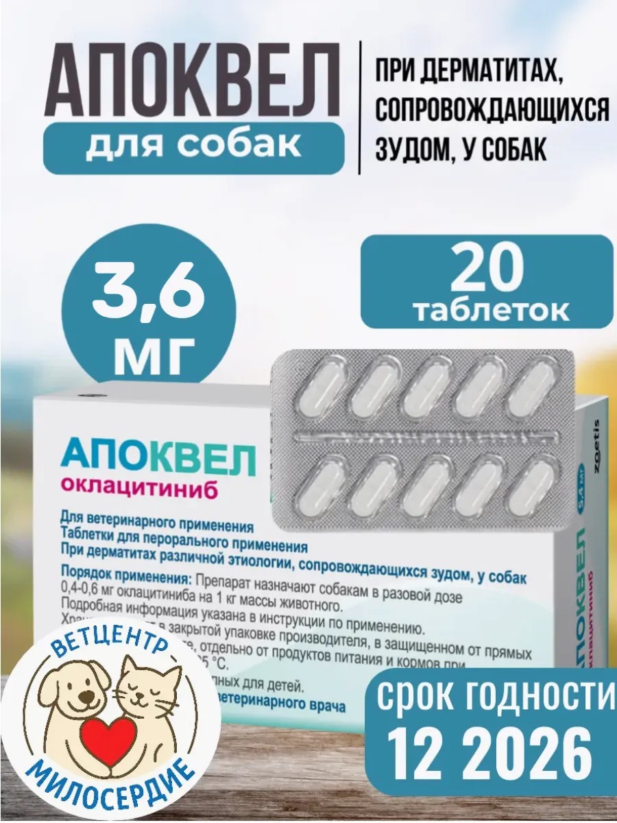 Introducing Apoquel 3.6 mg for dogs – an effective remedy that will restore your pet's comfort and joy! If your four-legged friend suffers from itching and allergies, Apoquel will be a real salvation. These 20 tablets from Zoetis will help cope with unpleasant symptoms and give your pet peace of mind. Apoquel 3.6 mg is specially designed for dogs and effectively combats various allergy symptoms, providing relief from itching and redness.