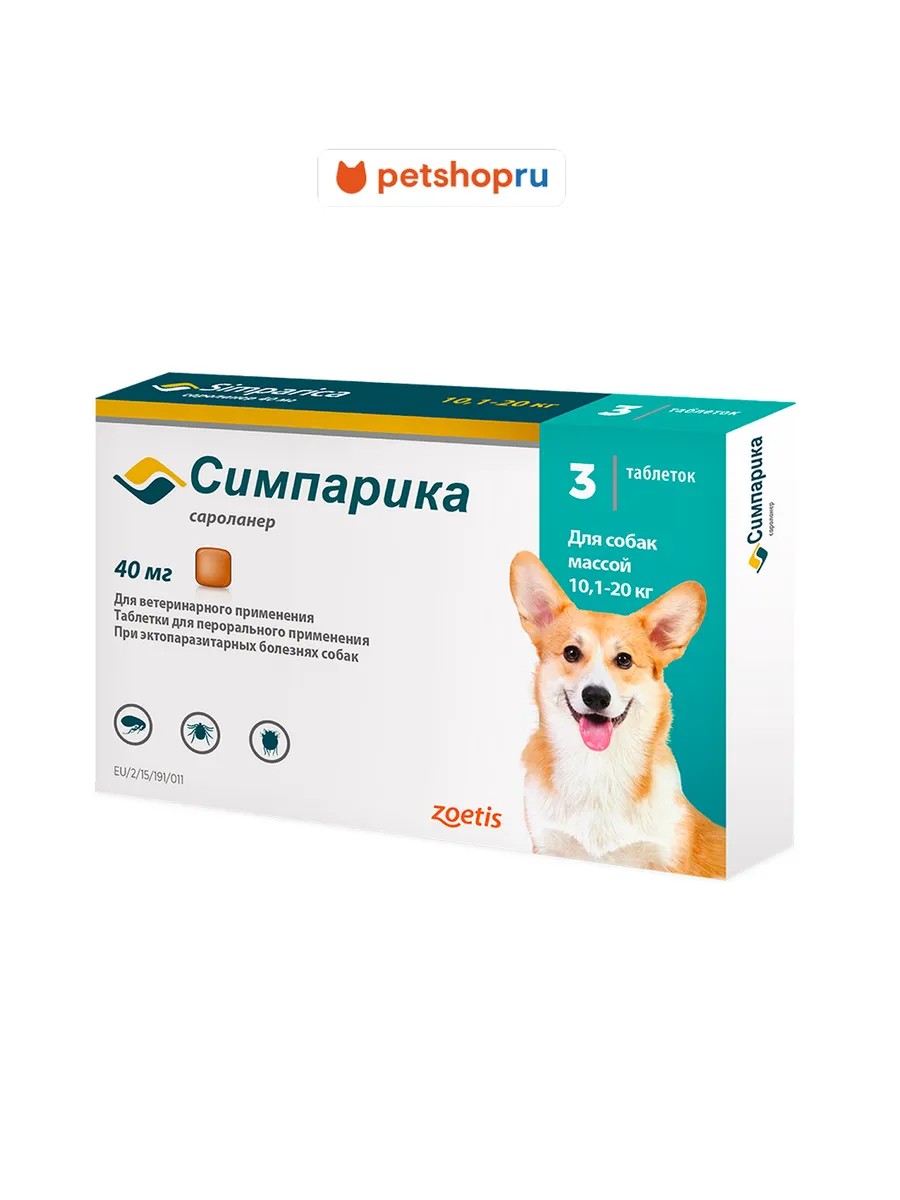 | Полное наименование товара | Таблетки от блох и клещей для собак 10-20кг, 40 мг, 3 шт |