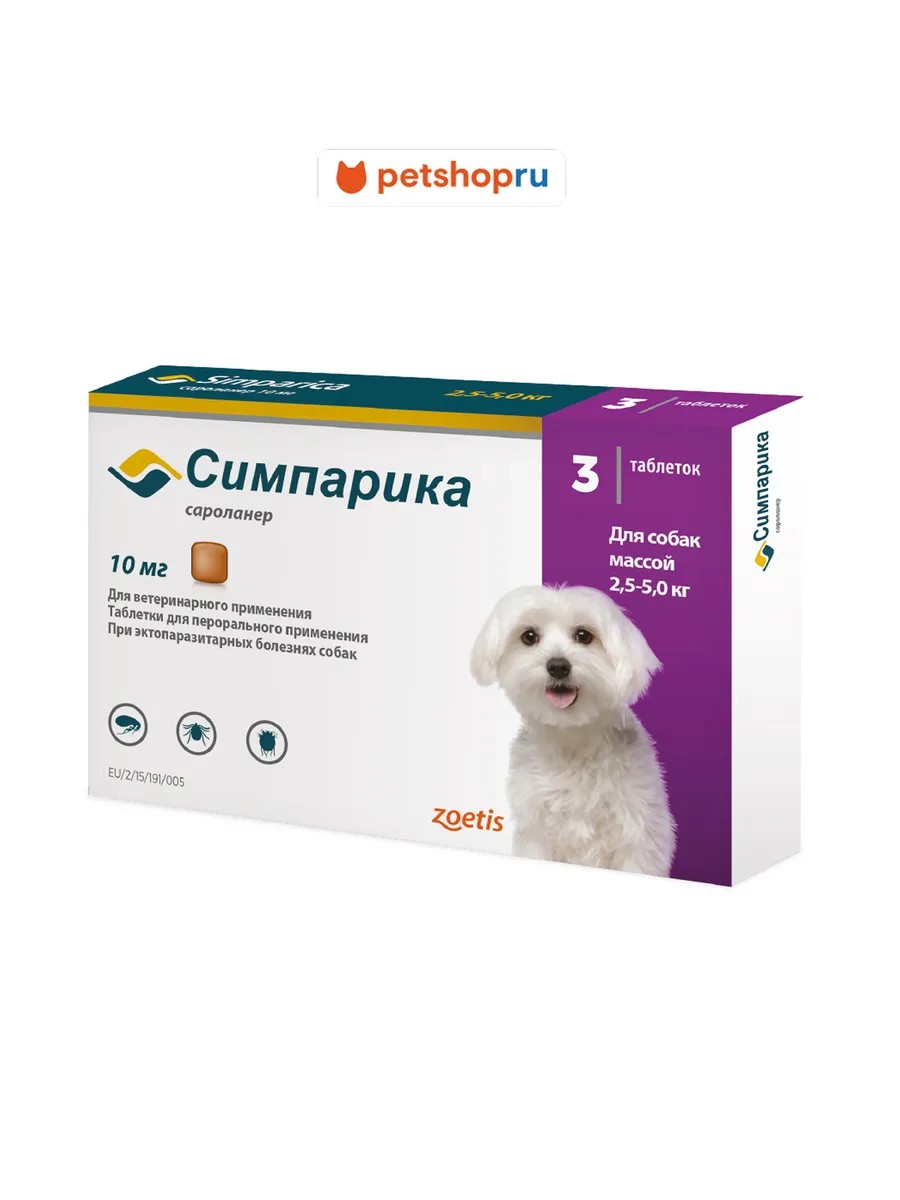 | Полное наименование товара | Таблетки от блох и клещей для собак 2.5-5кг, 10 мг, 3 шт |
