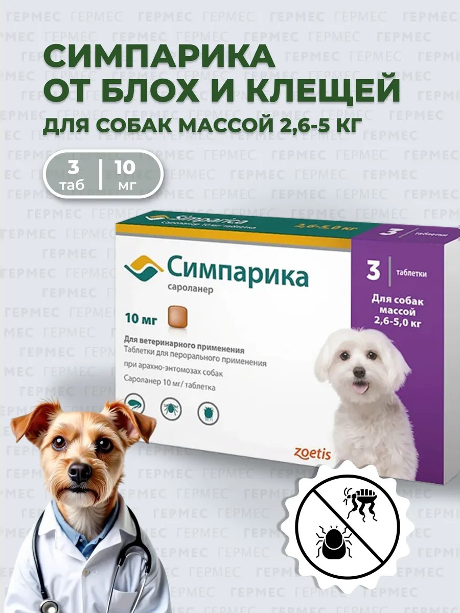 Симпарика 10 мг для собак 2,6-5 кг - 3 таб