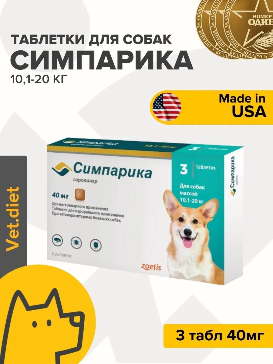 Защитите своего питомца от блох и клещей с помощью инновационного решения — таблеток "Симпарика" Zoetis! Этот эффективный препарат разработан специально для собак весом от 10,1 до 20 кг и обеспечивает надежную защиту от паразитов на протяжении месяца.