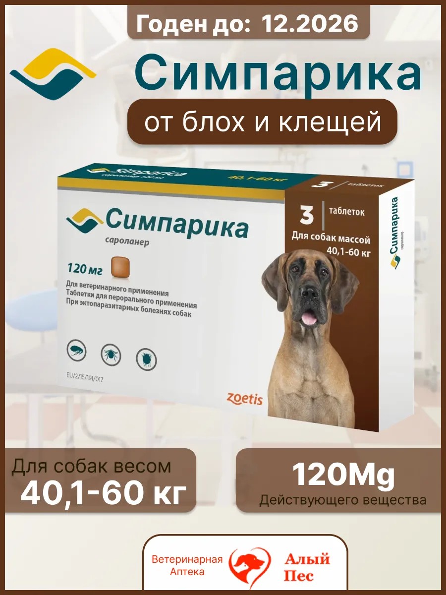Симпарика— разработана специально для собак компанией Зоэтис— мировым лидером вобласти ветеринарной фармакологии.