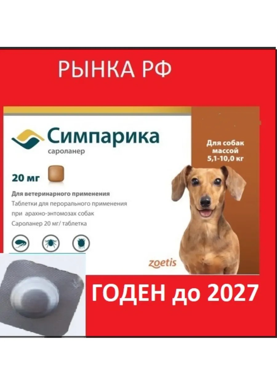 СИМПАРИКА от блох и клещей для собак весом 5-10 кг - это эффективный и надежный препарат, который защитит вашего питомца от паразитов на протяжении целого месяца. Одна таблетка СИМПАРИКА обеспечивает длительную защиту от блох и клещей, предотвращая заражение и избавляя от уже существующих паразитов. Препарат содержит активное вещество сароланер, которое быстро проникает в кровь животного и блокирует нервную систему паразитов, приводя к их гибели. СИМПАРИКА отличается удобством применения: достаточно дать собаке одну таблетку, и она будет защищена на целый месяц. Препарат подходит для собак весом от 5 до 10 кг и не имеет неприятного вкуса или запаха, что облегчает процесс приема. СИМПАРИКА - это надежный выбор для защиты вашего питомца от опасных паразитов.