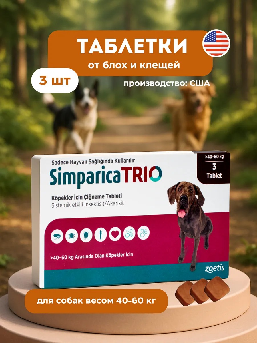 Итог: если нужны не «точечные» решения, а максимально широкая защита в одном шаге, Simparica Trio — выбор №1. Это удобно, комплексно и надёжно: одна таблетка — и собака закрыта от блох/клещей, основных кишечных гельминтов и риска дирофиляриоза.