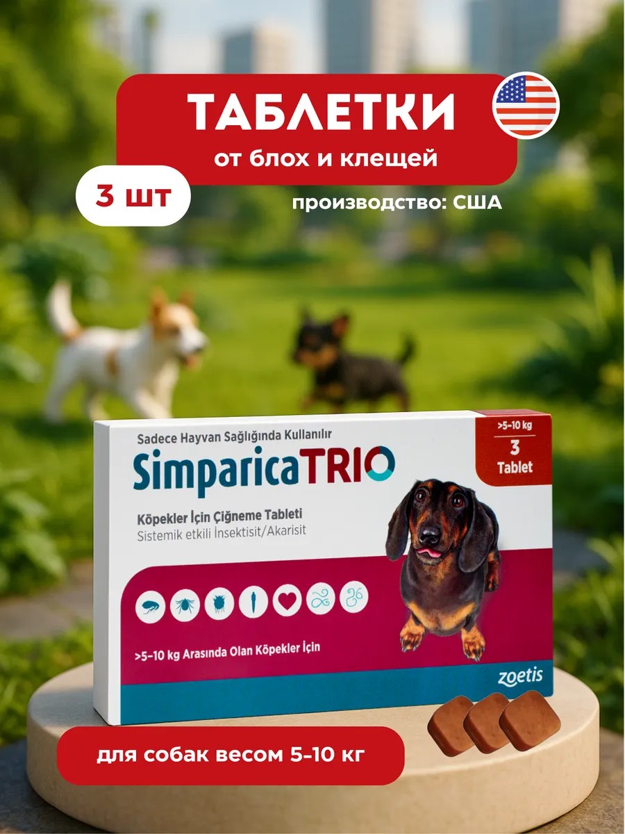 Итог: если нужны не «точечные» решения, а максимально широкая защита в одном шаге, Simparica Trio — выбор №1. Это удобно, комплексно и надёжно: одна таблетка — и собака закрыта от блох/клещей, основных кишечных гельминтов и риска дирофиляриоза.