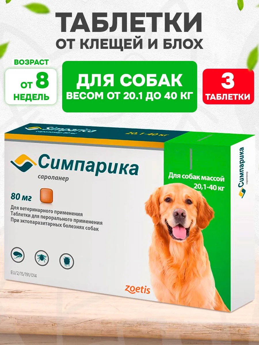 Симпарика таблетки от блох клещей для собак 20,1-40 кг 3 таб