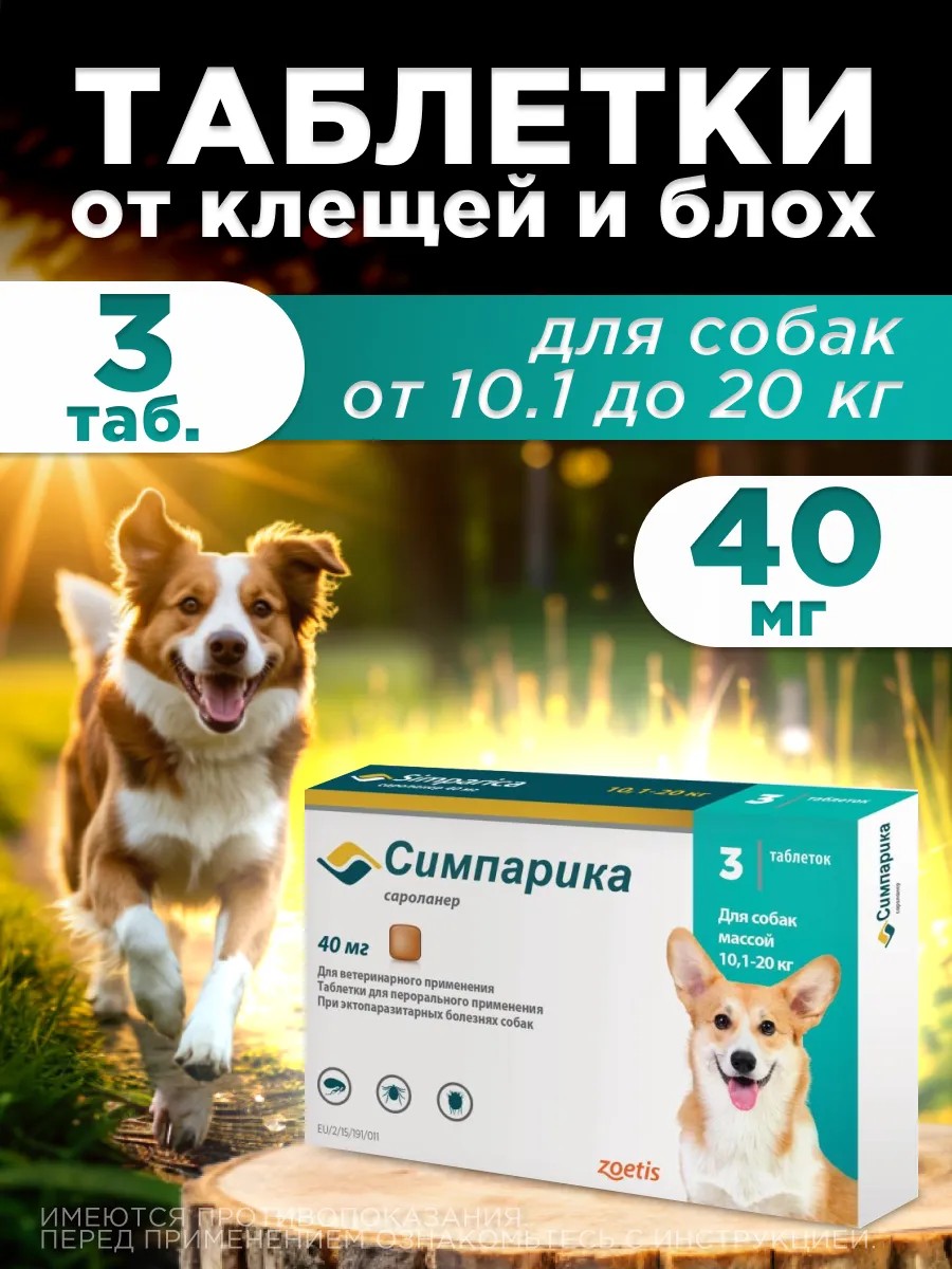 Таблетки Симпарика для собак от 10.1 до 20 кг