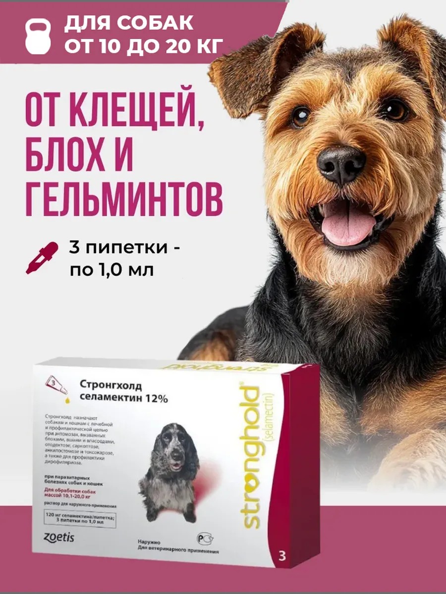 Стронгхолд 12% 1 мл*3 пип для собак 10-20 кг (120 мг)