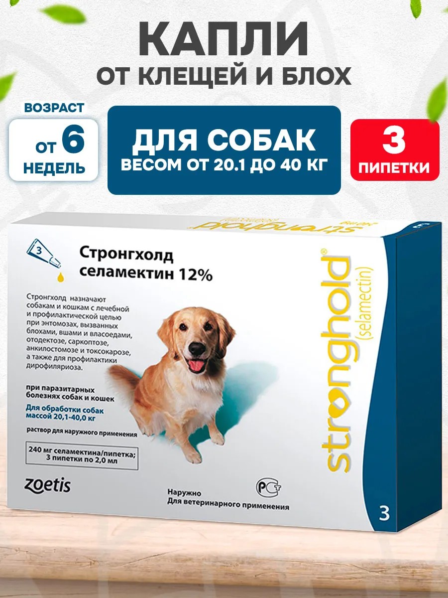 Стронгхолд капли от блох глистов для собак 20-40кг 3 пипетки