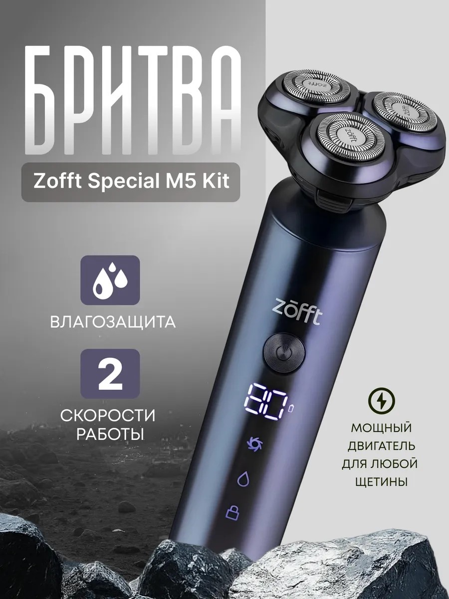 Электробритва Zofft M5 Kit — идеальный набор для мужчин, которые ценят комфорт, стиль и безупречный результат. Она обеспечивает гладкое и бережное бритье без раздражения, а её роторная система легко справляется даже с жесткой щетиной. Водонепроницаемый корпус позволяет использовать бритву с пеной или гелем, а защита от защемления делает процесс максимально комфортным.