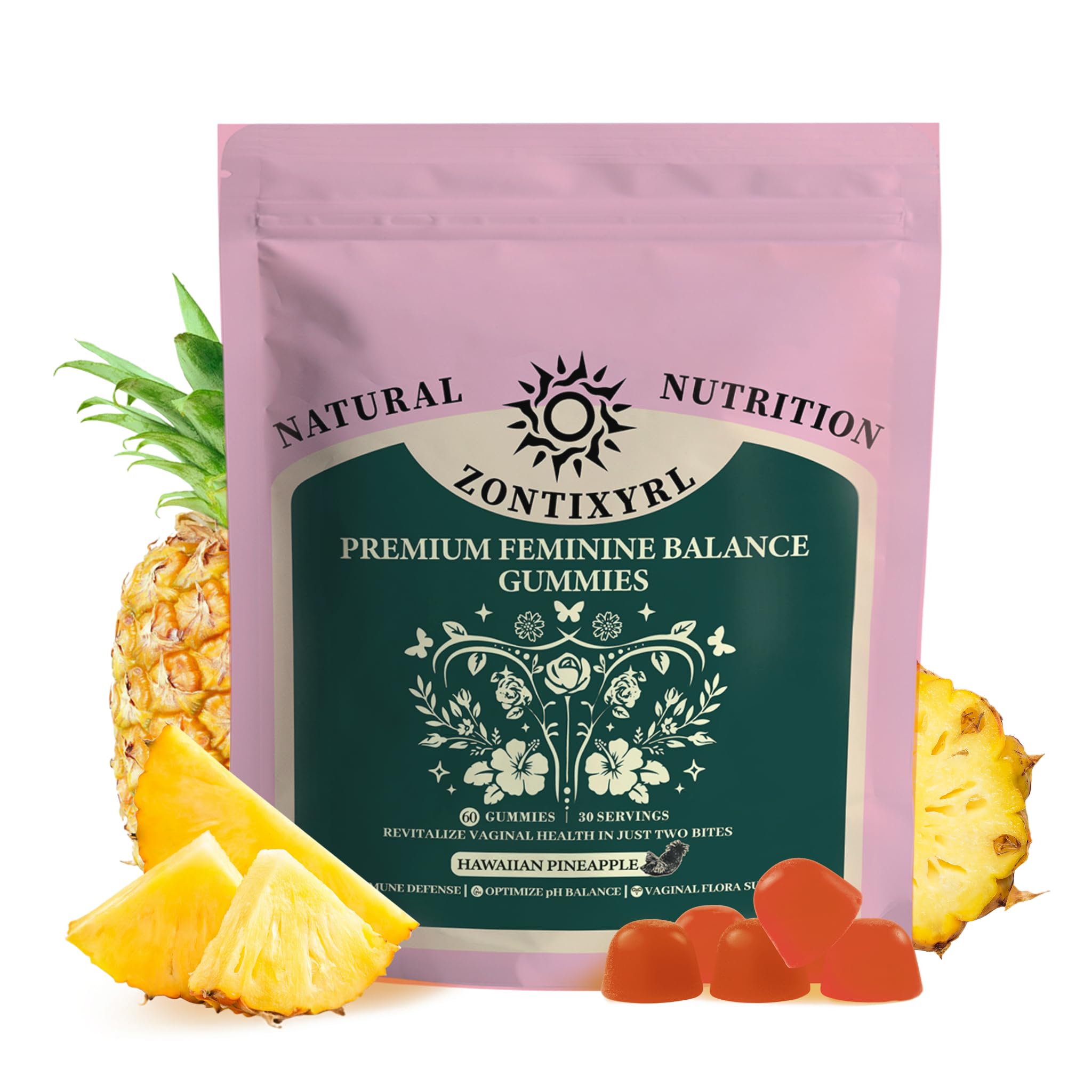 Zontixyrl Premium Feminine Balance Gummies Women - Pineapple Gummies for Women pH Probiotic and Immune Support Vegan Gluten Free 60 Gummies 30 Servings