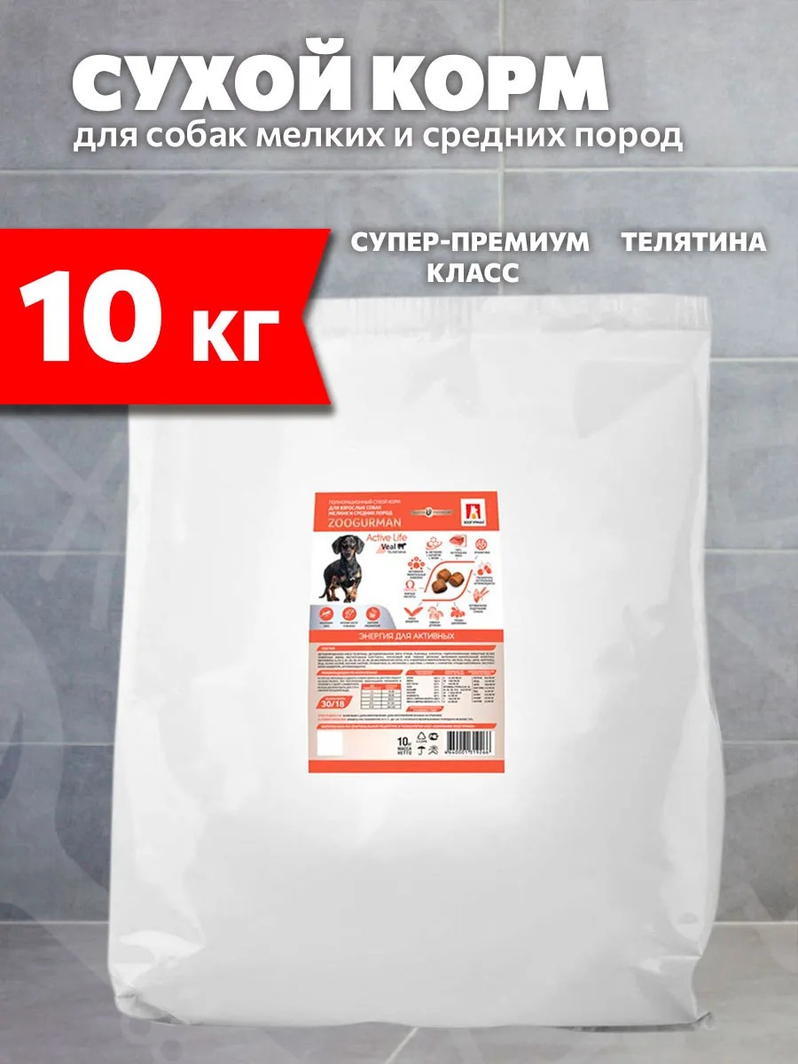 ЗООГУРМАН Корм сухой активных маленьких средних собак телятина 10 кг