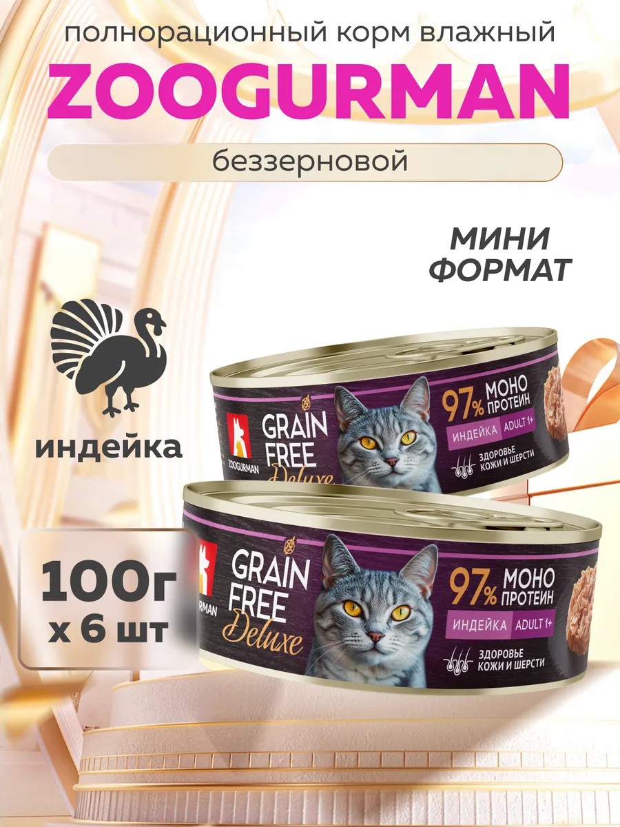 ЗООГУРМАН Корм влажный для кошек Grain free Индейка 100г х6 шт