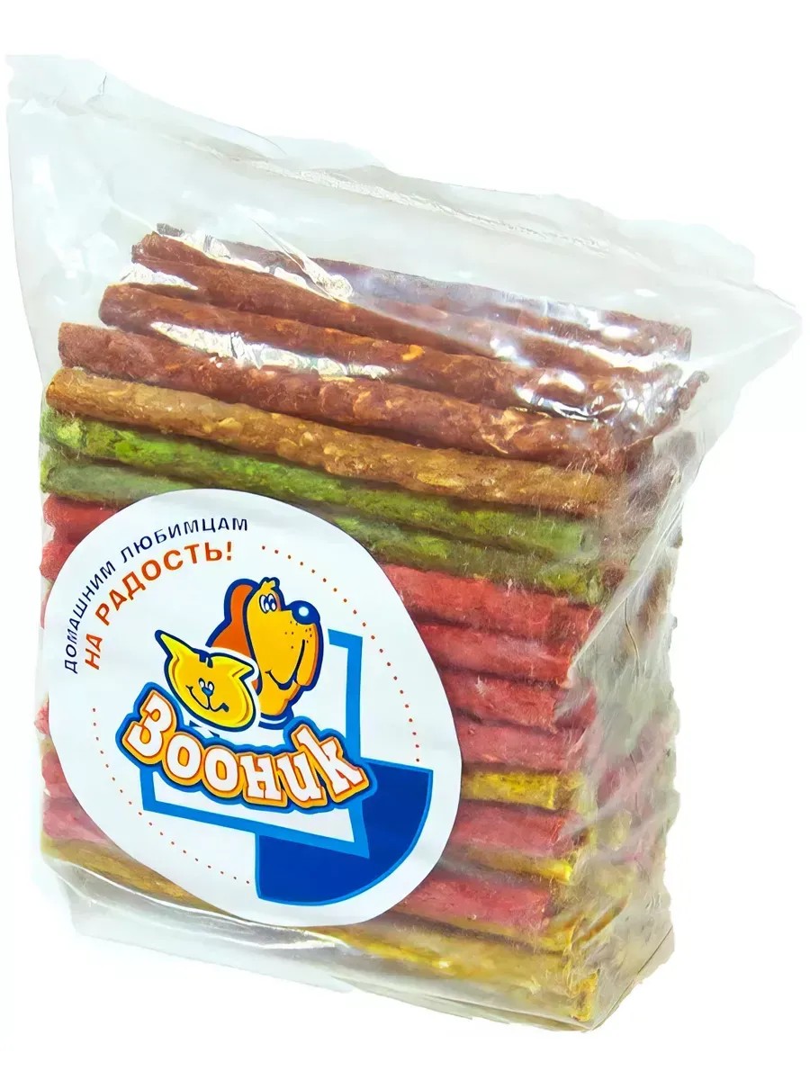 Корм Зооник для собак, цветные жевательные полоски 5х0. 7 мм, 9-10 г, 100 шт Цветные жевательные косточки Зооник. Цветные палочки для собак из сыромятной кожи. Не содержат искусственных ароматизаторов. Палочки укрепляют зубы и челюсти вашего хвостатого друга. Они заменят игрушку и отвлекут собаку во время вашего отсутствия. Прекрасно очищает зубы и межзубное пространство, освежает дыхание. При ежедневном применении предупреждает образование зубного налета. Удовлетворяет природный жевательный инстинкт собаки. Как дополнение к общему питанию собаки.