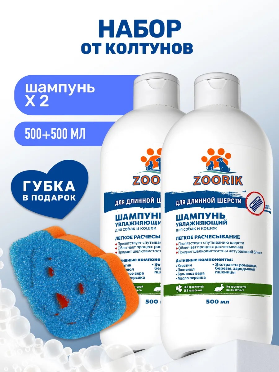 ZOORIK Набор шампунь для собак и кошек от колтунов, 500 мл 2 шт