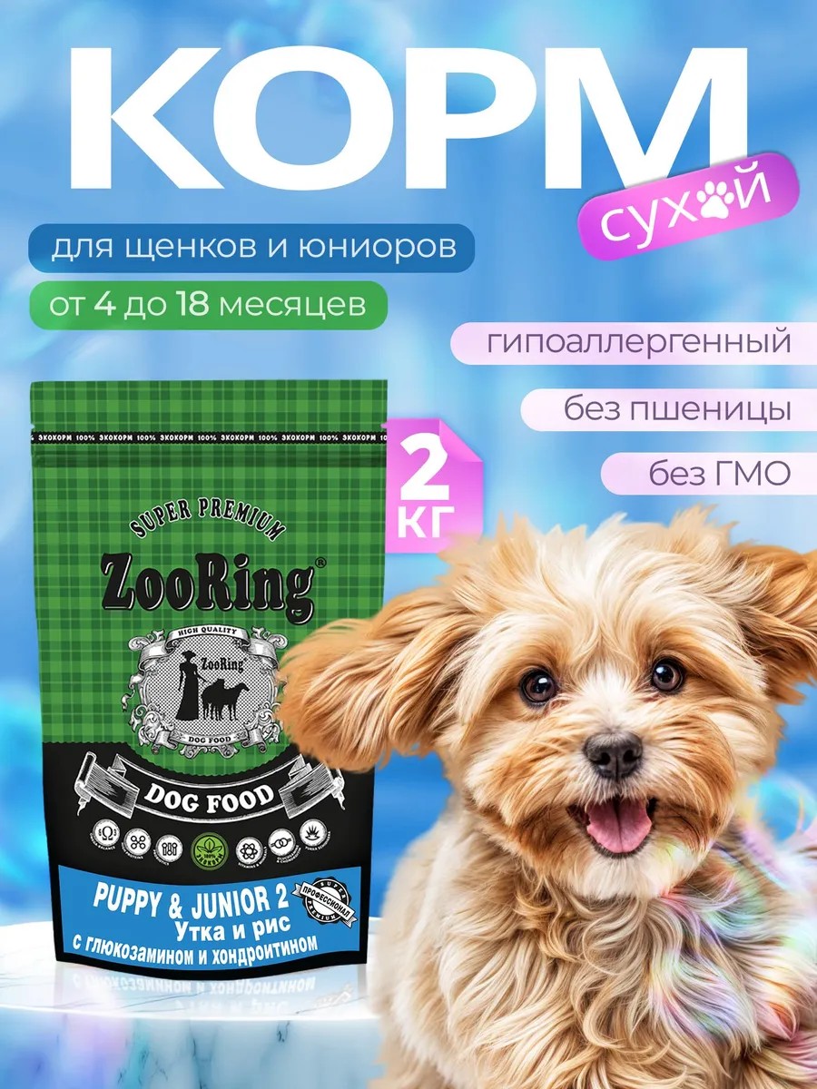 Puppy & Junior 2 Professional is a complete, super-premium dry food for puppies and juniors of medium and large breeds from 4 to 12-18 months, depending on the breed, designed to meet their increased energy needs. ZooRing is a holistic food for puppies. The specially developed formula and kibble size are suitable for growing puppies, clean plaque from teeth, and help prevent tartar buildup. ZooRing food contains minimal grains. It strengthens the immune system, ensures proper development, excellent digestion, healthy skin, a shiny coat, and strong teeth and bones. It also contains a beauty formula for skin and coat.