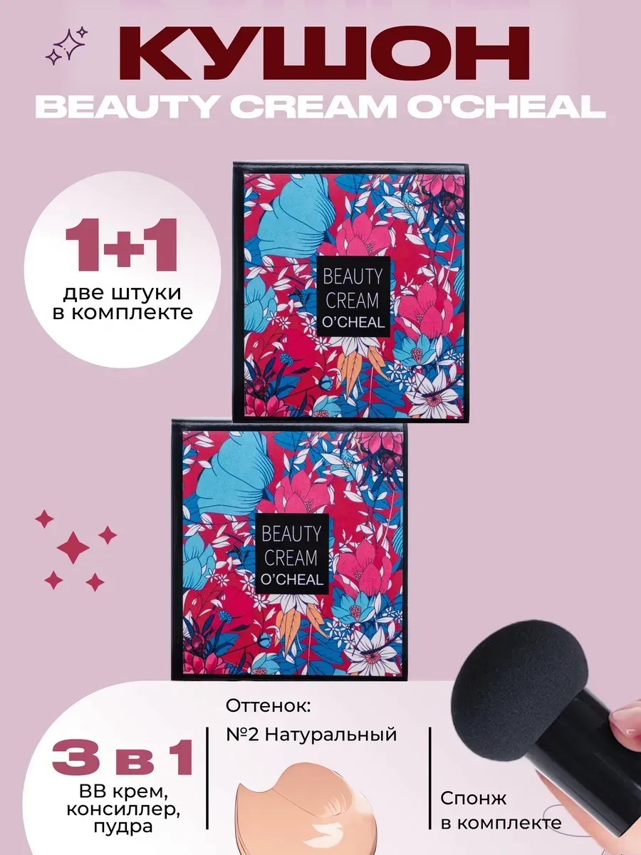 Кушон Beauty Cream O’cheal прекрасное тональное средство, которое не только маскирует недостатки кожи и выравнивает цвет лица, но и ухаживает за ней, благодаря большому количеству питательных веществ. Многофункциональное средство, которое может заменить вам консилер, тональный крем и пудру. Для равномерного нанесения и экономичного расхода бб крема, в комплект входит мягкий и эластичный спонж для лица. Средство легко наносится, удобно в использовании. Подходит для всех типов кожи, увлажняет, питает и матирует кожу лица, идеально перекрывает тёмные круги под глазами, убирает покраснения на лице, пигментацию и другие несовершенства. После нанесения крема кожа становится мягкой, свежей и упругой, поверх отлично ложатся румяна и тени без прилипания. Основные действующие компоненты: Витамин Е (токоферол) устраняет отечность и следы усталости, обеспечивает питание. Фитоэкстракты оказывают регенерирующее и противовоспалительное действие. Способ применения: как тональной основы – слегка намочите спонж и нанесите крем на кожу лица притаптывающими движениями, растушёвывая. Как консилер – выполните те же действия сухим спонжем. После использования рекомендуется промыть спонж и просушить его сухой салфеткой.