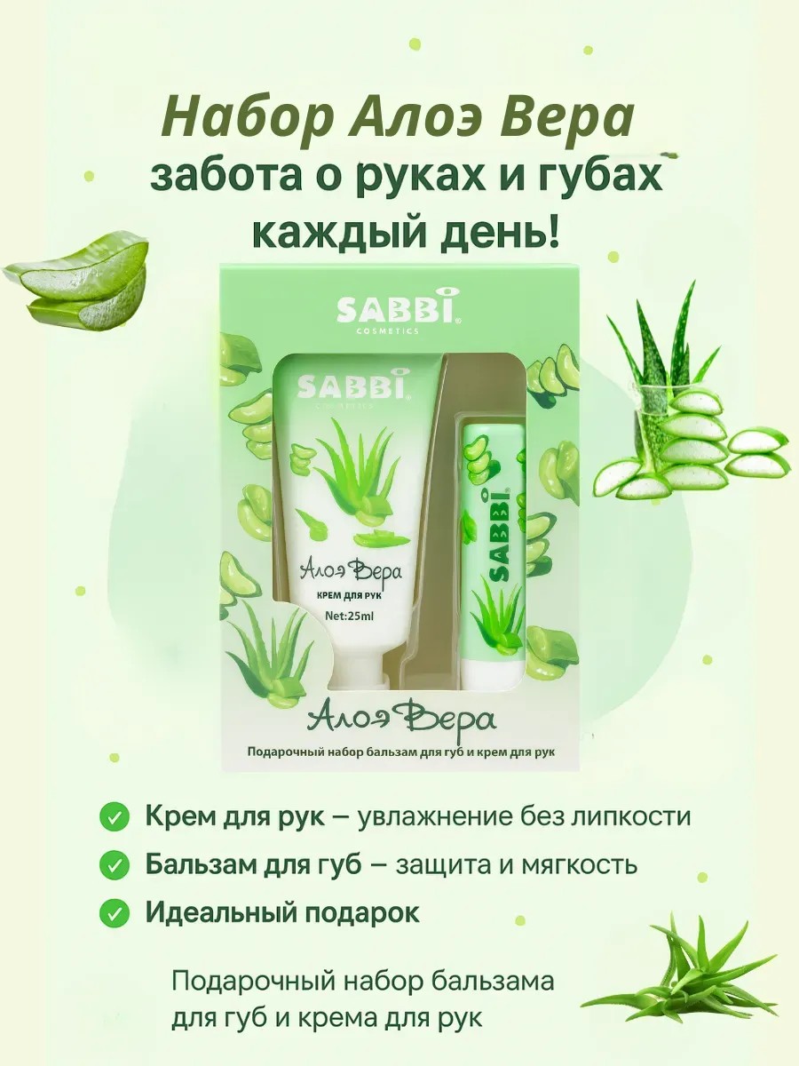 | Полное наименование товара | Подарочный набор из бальзама для губ и крема для рук Алоэ Вера |