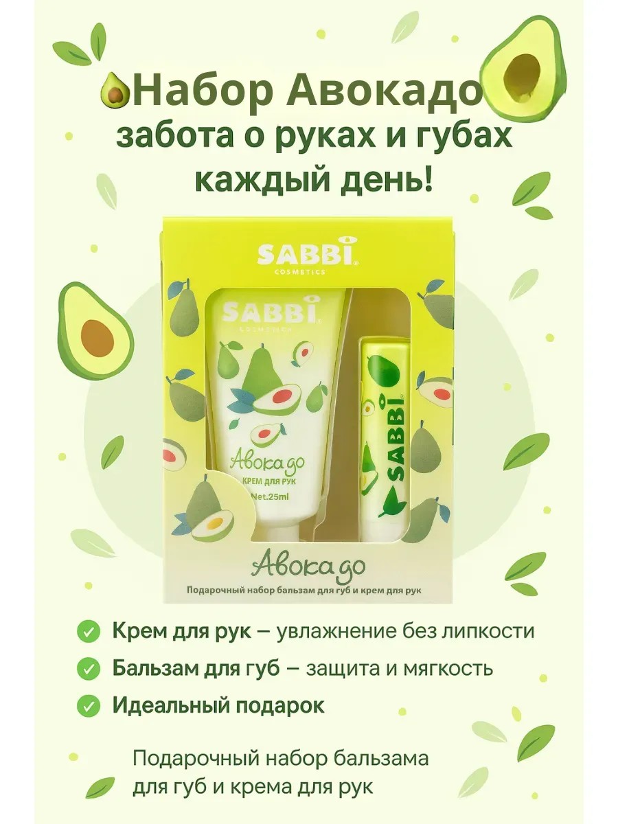 | Полное наименование товара | подарочный набор из бальзама для губ и крема для рук Авокадо |