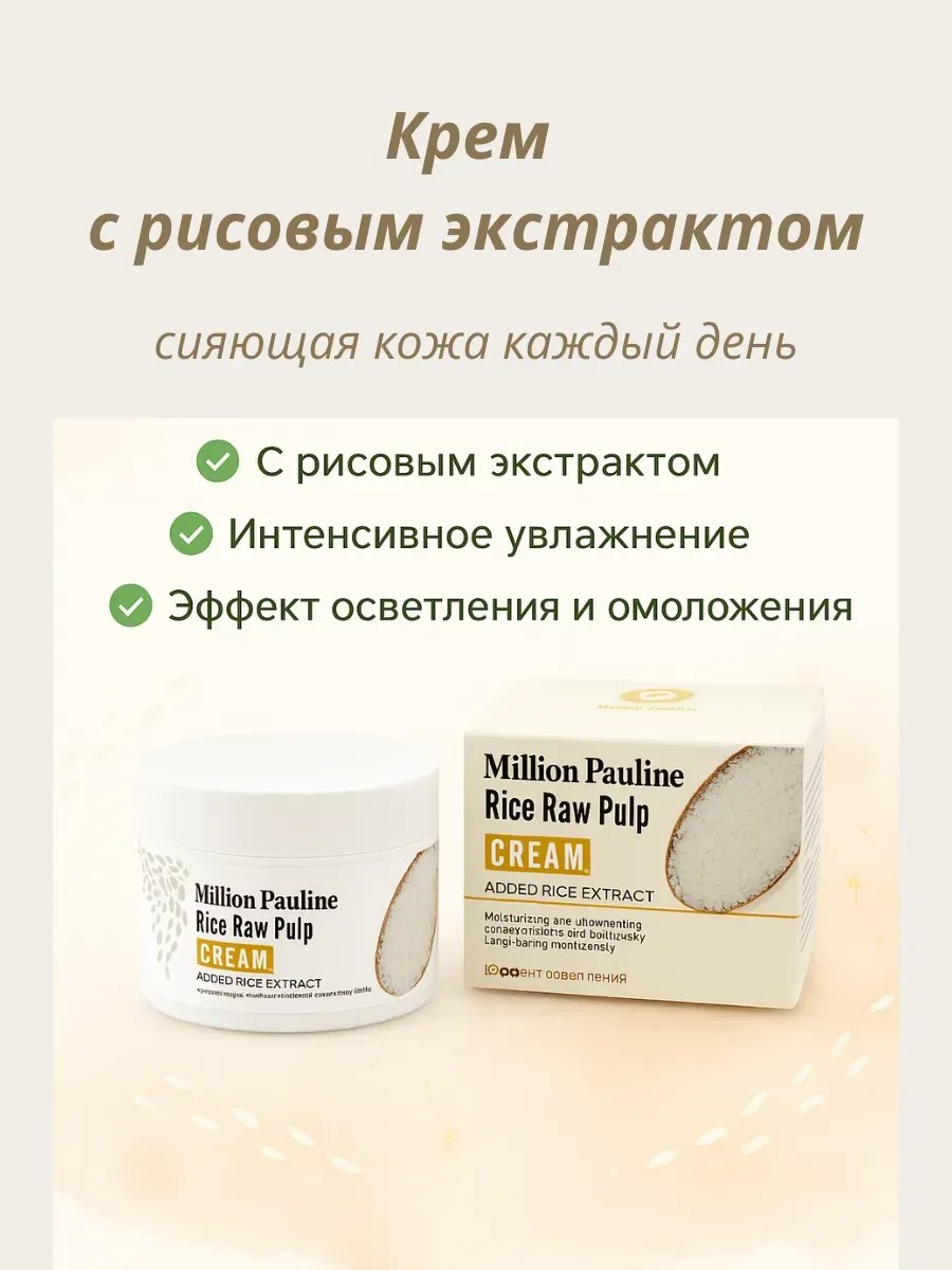 Крем для лица с рисовым экстрактом Rice Raw Pulp Cream — это интенсивный увлажняющий и омолаживающий уход, созданный для ежедневного применения. Лёгкая текстура быстро впитывается, не оставляя липкости, дарит коже свежесть и сияние. Благодаря рисовому экстракту крем глубоко питает, устраняет сухость и шелушение, помогает выровнять тон и вернуть коже естественную упругость.