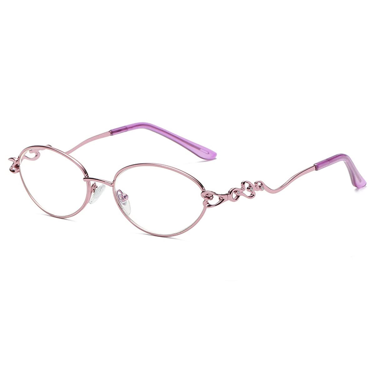 Zukky anti-blue lighting glasses for women purple hollow temple glasses oval lentils metal frames reader AM21 (color: purple size: 1.5x)