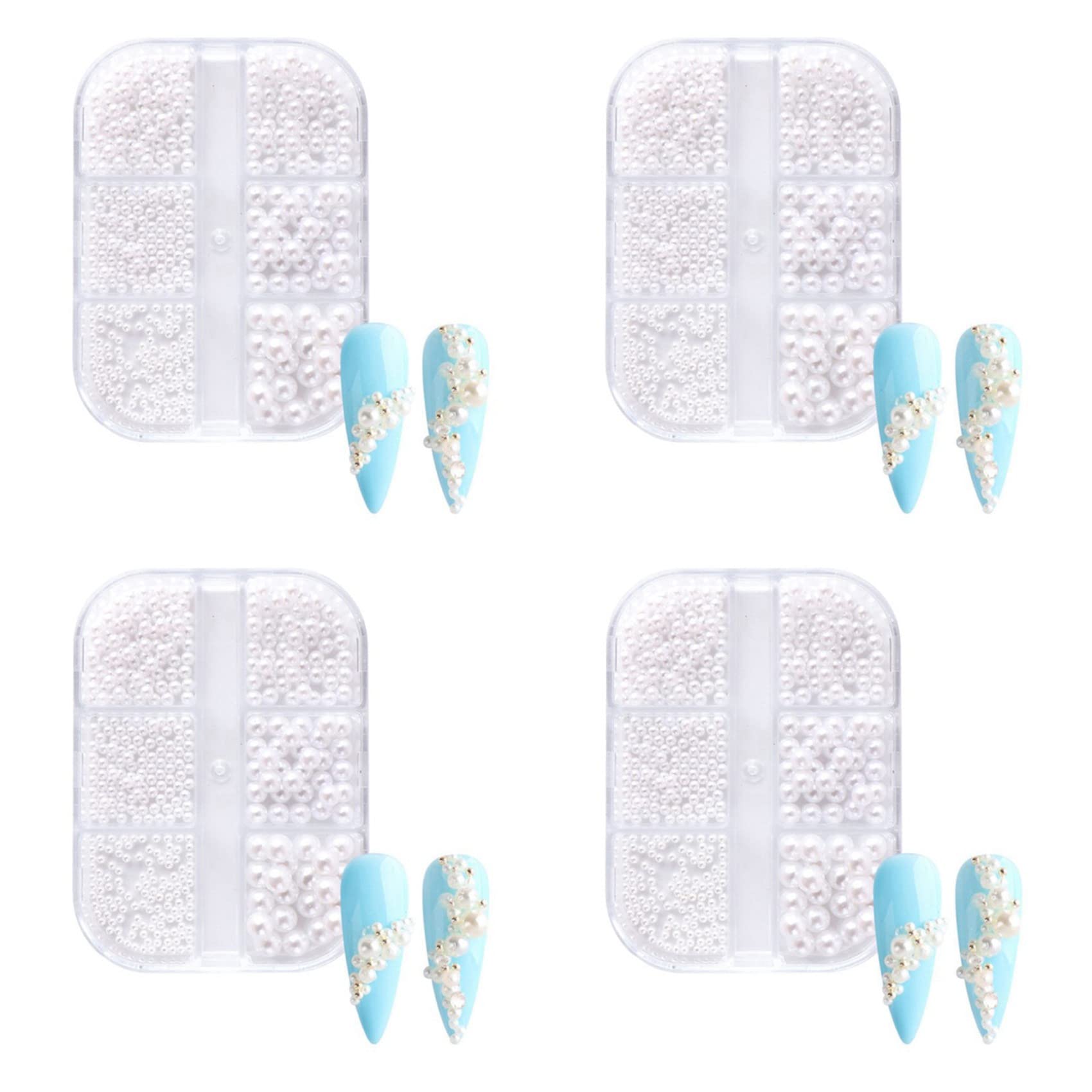 Zunedhys 4Box Pearl Decorations Nail Charms White Round Nail Parts Gold Steel Beads Balls Jewelry Nail Art Accessories Color:ZZ13