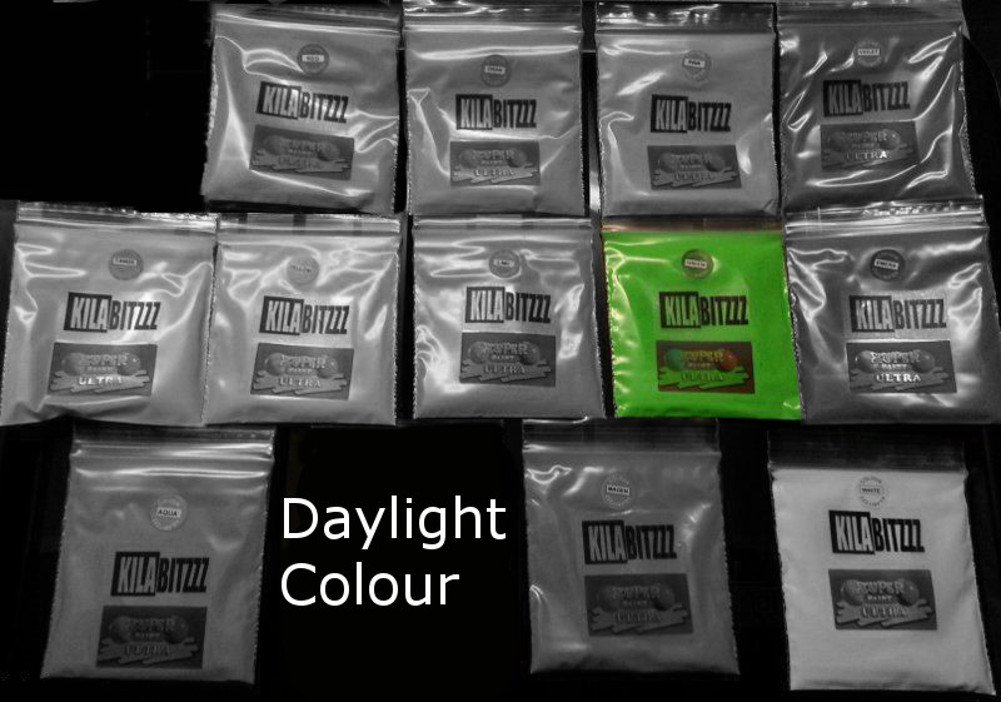 - Available in many colors. We invented and manufacture this pigment. - - - 20g of the same color - Color of your choice. Ultra-pigmented fluorescent powder. Works best when mixed with clear resin. The pigment powder has a brilliant color in daylight. Glows the same color when viewed under ultraviolet black light. Once charged with light, it glows in the dark (see photos for color in the dark). The more light it is charged with, the more intense the fluorescence will be. Very fine granulation, ideal for mixing with resins, varnishes, and other liquids. Ideal for airbrushing, jewelry making, and creating beautiful artwork. Glows when violet light is on and in the dark when the light is off. Glows best with violet light bulbs that have a wavelength of 365 nm - Also glows at higher ultraviolet wavelengths and with ultraviolet LEDs. Non-toxic, non-radioactive. Optimal lifespan. See photos for how colors appear under different lighting conditions (daylight, darkness, ultraviolet light).Non-toxic, non-radioactive. Premium quality powder to be mixed with clear resin and other liquids (not water). 20-page information leaflet included. Fluorescent neon color, glows under UV light. Glows in the dark once charged with light.Poudre pigmentée ultra fluorescente - Pour les étagères luminescentes ou les bijoux en résine, Green, 20 gDESCRIPTION DU PRODUIT - Disponible en de nombreuses couleurs. Nous avons inventé et fabriquons ce pigment. - - - 20 g de la même couleur - Couleur au choix. Poudre fluorescente ultra pigmentée. Fonctionne très bien lorsqu'elle est mélangée avec de la résine transparente. La poudre pigmentée a une couleur éclatante à la lumière du jour. Brille de la même couleur lorsqu'on la regarde dans la lumière noire ultraviolette. Une fois chargée de lumière, elle brille dans l'obscurité (voir les photos pour la couleur dans le noir). Plus elle est chargée de lumière, plus la fluorescence sera intense. Granulation très fine, idéale pour le mélange avec les résines, vernis et autres liquides. Idéal pour un usage aérographe, fabrication de bijoux et de belles œuvres d'art. Brille lorsque la lumière violette est allumée et dans l'obscurité lorsque la lumière est éteinte. Brille mieux avec des ampoules à lumière violette qui ont une longueur d'onde de 365 nm - Brille également à des longueurs d'onde ultraviolettes plus élevées et avec des LED ultraviolettes. Non toxique, non radioactive. Durée de vie optimale. Voir les photos pour la façon dont les couleurs apparaissent sous chaque lumière (lumière du jour, obscurité, lumière ultraviolette).Non toxique, non radioactive. Poudre de qualité supérieure à mélanger avec de la résine claire et d'autres liquides (pas d'eau). Brochure d'information de 20 pages inclue. Couleur de néon fluorescent, luisant aux rayons UV. S'allume dans l'obscurité une fois chargée de lumière.