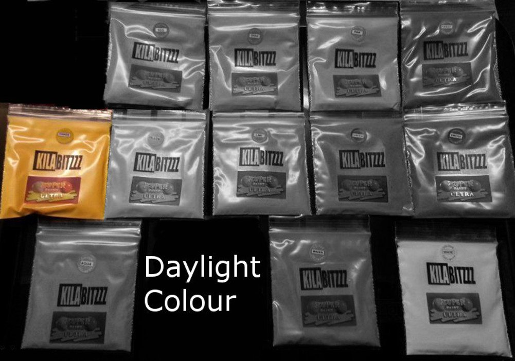 - Available in many colors. We invented and manufacture this pigment. - - - 20g of the same color - Color of your choice. Ultra-pigmented fluorescent powder. Works best when mixed with clear resin. The pigment powder has a brilliant color in daylight. Glows the same color when viewed under ultraviolet black light. Once charged with light, it glows in the dark (see photos for color in the dark). The more light it is charged with, the more intense the fluorescence will be. Very fine granulation, ideal for mixing with resins, varnishes, and other liquids. Ideal for airbrushing, jewelry making, and creating beautiful artwork. Glows when violet light is on and in the dark when the light is off. Glows best with violet light bulbs that have a wavelength of 365 nm - Also glows at higher ultraviolet wavelengths and with ultraviolet LEDs. Non-toxic, non-radioactive. Optimal lifespan. See photos for how colors appear under different lighting conditions (daylight, darkness, ultraviolet light).Non-toxic, non-radioactive. Premium quality powder to be mixed with clear resin and other liquids (not water). 20-page information leaflet included. Fluorescent neon color, glows under UV light. Glows in the dark once charged with light.Poudre pigmentée ultra fluorescente - Pour les étagères luminescentes ou les bijoux en résine, mandarine, 20 gDESCRIPTION DU PRODUIT - Disponible en de nombreuses couleurs. Nous avons inventé et fabriquons ce pigment. - - - 20 g de la même couleur - Couleur au choix. Poudre fluorescente ultra pigmentée. Fonctionne très bien lorsqu'elle est mélangée avec de la résine transparente. La poudre pigmentée a une couleur éclatante à la lumière du jour. Brille de la même couleur lorsqu'on la regarde dans la lumière noire ultraviolette. Une fois chargée de lumière, elle brille dans l'obscurité (voir les photos pour la couleur dans le noir). Plus elle est chargée de lumière, plus la fluorescence sera intense. Granulation très fine, idéale pour le mélange avec les résines, vernis et autres liquides. Idéal pour un usage aérographe, fabrication de bijoux et de belles œuvres d'art. Brille lorsque la lumière violette est allumée et dans l'obscurité lorsque la lumière est éteinte. Brille mieux avec des ampoules à lumière violette qui ont une longueur d'onde de 365 nm - Brille également à des longueurs d'onde ultraviolettes plus élevées et avec des LED ultraviolettes. Non toxique, non radioactive. Durée de vie optimale. Voir les photos pour la façon dont les couleurs apparaissent sous chaque lumière (lumière du jour, obscurité, lumière ultraviolette).Non toxique, non radioactive. Poudre de qualité supérieure à mélanger avec de la résine claire et d'autres liquides (pas d'eau). Brochure d'information de 20 pages inclue. Couleur de néon fluorescent, luisant aux rayons UV. S'allume dans l'obscurité une fois chargée de lumière.