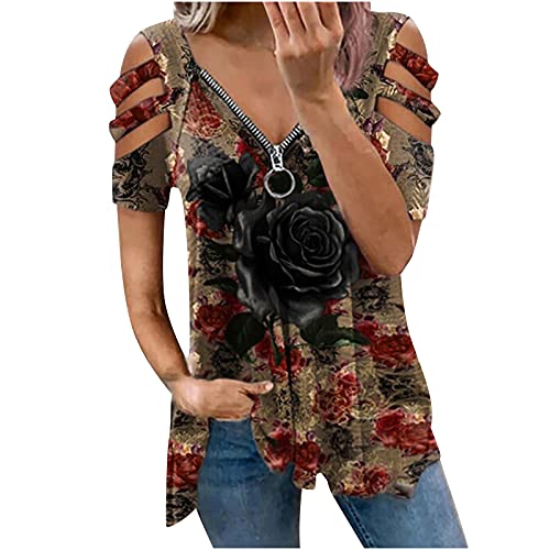 ZVAVZ Woman Summer T-Shirts Sexy Off Shoulder Tops Short Sleeves V Neck Tee Trendy Chain Blouse Colorful Print Tunic Black
