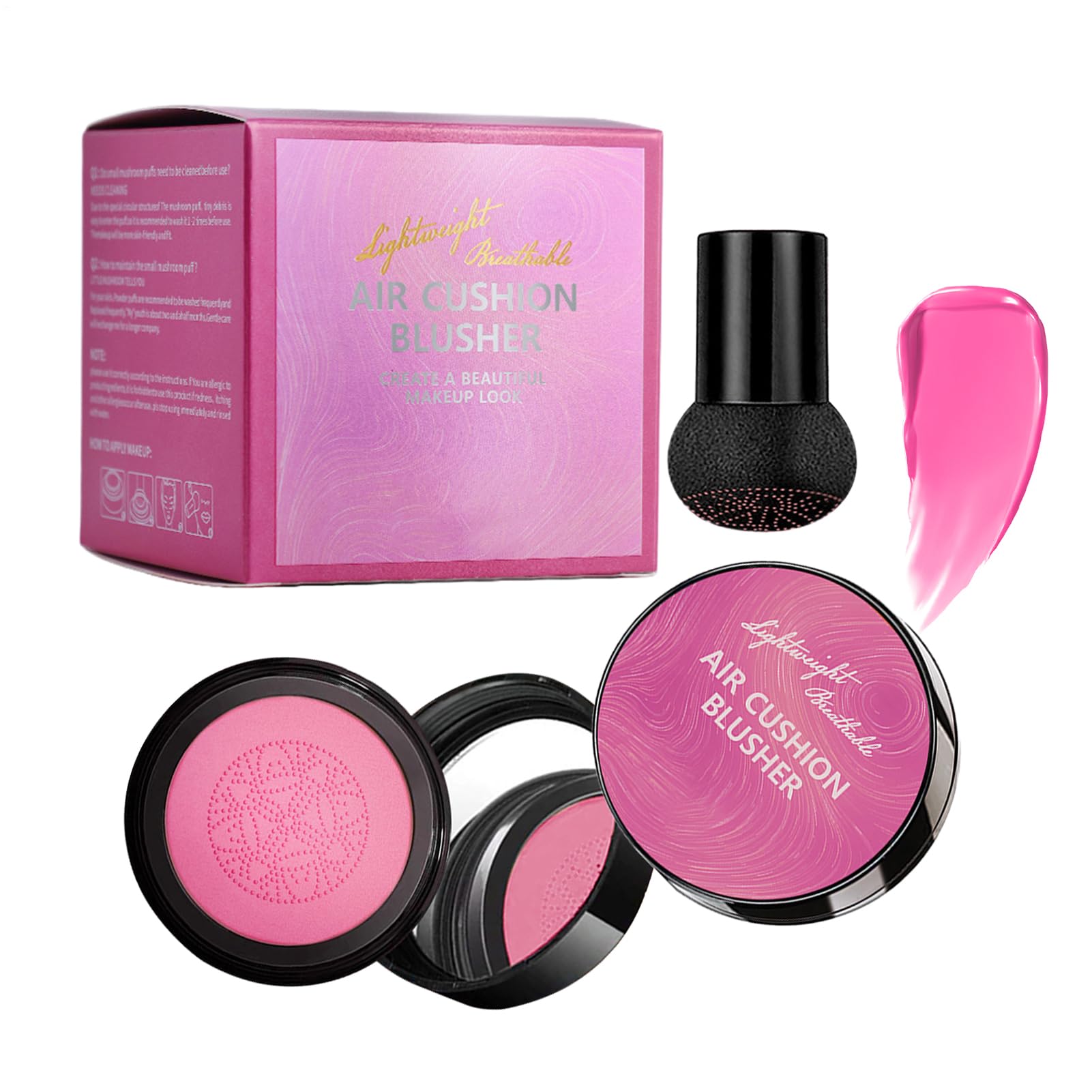 DESCRIPTION DU PRODUIT Our cushion blush provides a smooth texture that enhances your face with a natural glow and radiant finish. The moisturizing formula provides long-lasting coverage, making it ideal for contouring and highlighting. Featuring a convenient mirror and mushroom applicator, it's perfect for beginners and travelers who value effortless elegance in their makeup routines. Specification: Net content: 20g Pack List: Cushion blush 1 Note: Due to different lighting and screen settings, the item color may be slightly different from the picture. Due to different manual measurements, please allow a 1-2cm difference in size.Elegant and Effortless Makeup: Perfect for achieving an effortless, elegant makeup look, this blush can be applied to both casual and formal styles, making it versatile for all occasions. Whether you're going for a light everyday flush or a more defined look, this blush enhances your complexion naturally. Silky, Lightweight Texture: The silky, lightweight formula glides onto your skin with ease, offering buildable coverage for a soft, natural tint. The blush stays comfortable on your skin without feeling heavy, providing a long-lasting effect for hours of wear. Built-in Mirror for On-the-Go Touch-Ups: The convenient mirror included in the compact makes this blush perfect for quick touch-ups while traveling or during the day, allowing you to apply your blush anytime and anywhere, ensuring you look throughout the day. Mushroom Applicator for Easy Application: Designed with a unique mushroom-shaped applicator, this blush allows for effortless application, ensuring that you can blend the product seamlessly onto your cheeks without or unevenness, giving you a finish every time. Natural Blush for a Radiant Glow: This cheek blush a smooth, silky tint that enhances your natural beauty, providing a subtle yet radiant flush to your cheeks for a youthful and glowing appearance, perfect for creating a , everyday look.Natural Cheek Blush with Mirror, Silky Blusher Tint, Mushroom Applicator, Perfect for Enhancing Face and Creating an Elegant, Natural Look, Effortless Makeup, 20gDESCRIPTION DU PRODUIT Our cushion blush provides a smooth texture that enhances your face with a natural glow and radiant finish. The moisturizing formula provides long-lasting coverage, making it ideal for contouring and highlighting. Featuring a convenient mirror and mushroom applicator, it's perfect for beginners and travelers who value effortless elegance in their makeup routines. Specification: Net content: 20g Pack List: Cushion blush 1 Note: Due to different lighting and screen settings, the item color may be slightly different from the picture. Due to different manual measurements, please allow a 1-2cm difference in size.Elegant and Effortless Makeup: Perfect for achieving an effortless, elegant makeup look, this blush can be applied to both casual and formal styles, making it versatile for all occasions. Whether you're going for a light everyday flush or a more defined look, this blush enhances your complexion naturally. Silky, Lightweight Texture: The silky, lightweight formula glides onto your skin with ease, offering buildable coverage for a soft, natural tint. The blush stays comfortable on your skin without feeling heavy, providing a long-lasting effect for hours of wear. Built-in Mirror for On-the-Go Touch-Ups: The convenient mirror included in the compact makes this blush perfect for quick touch-ups while traveling or during the day, allowing you to apply your blush anytime and anywhere, ensuring you look throughout the day. Mushroom Applicator for Easy Application: Designed with a unique mushroom-shaped applicator, this blush allows for effortless application, ensuring that you can blend the product seamlessly onto your cheeks without or unevenness, giving you a finish every time. Natural Blush for a Radiant Glow: This cheek blush a smooth, silky tint that enhances your natural beauty, providing a subtle yet radiant flush to your cheeks for a youthful and glowing appearance, perfect for creating a , everyday look.