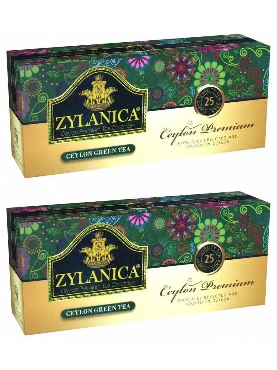 ZYLANICA Чай зеленый, Ceylon Premium Collection, 2 уп по 25 пакетиков