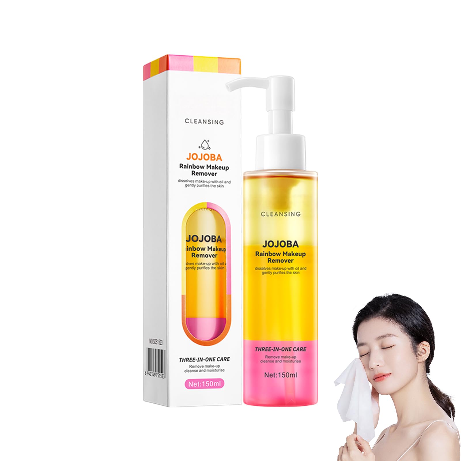 Gentle yet effective makeup removal: This 150 ml Rainbow makeup remover oil effortlessly dissolves all types of makeup, including long-lasting and water-resistant formulas. The gentle formula provides thorough cleaning without strong rubbing and leaves the skin fresh and clean. Moisturizing formula for soft skin: The moisturizing texture of this cleanser deeply conditions and hydrates your skin while removing makeup, preventing dryness and maintaining your skin's natural moisture balance. Perfect for daily use, especially for dry or sensitive skin. Suitable for all skin types: this make-up remover oil is suitable for all skin types, from oily to dry and sensitive skin. The light, non-greasy formula provides a thorough cleansing, without disrupting pores or causing irritation, and leaves a refreshing feeling. EASY TO USE QUICK RINSE: Simply apply the oil to dry skin and massage gently to remove makeup and impurities. It can be easily emulsified with water thus allowing quick and effortless rinsing without oily residue, making your cleaning routine fast and efficient. Ideal for everyday use: With its size of 150 ml, this make-up remover oil offers excellent value for money and is perfect for everyday use. It helps to maintain clear, hydrated and balanced skin, making it an indispensable part of your evening skin care. Enjoy a flawless, clear complexion every day. SAFETY WARNING Keep away from children. Keep the container tightly closed in a dry and well-ventilated place.Ideal for everyday use: With its size of 150 ml, this make-up remover oil offers excellent value for money and is perfect for everyday use. It helps to maintain clear, hydrated and balanced skin, making it an indispensable part of your evening skin care. Enjoy a flawless, clear complexion every day. EASY TO USE QUICK RINSE: Simply apply the oil to dry skin and massage gently to remove makeup and impurities. It can be easily emulsified with water thus allowing quick and effortless rinsing without oily residue, making your cleaning routine fast and efficient. Suitable for all skin types: this make-up remover oil is suitable for all skin types, from oily to dry and sensitive skin. The light, non-greasy formula provides a thorough cleansing, without disrupting pores or causing irritation, and leaves a refreshing feeling. Moisturizing formula for soft skin: The moisturizing texture of this cleanser deeply conditions and hydrates your skin while removing makeup, preventing dryness and maintaining your skin's natural moisture balance. Perfect for daily use, especially for dry or sensitive skin. Gentle yet effective makeup removal: This 150 ml Rainbow makeup remover oil effortlessly dissolves all types of makeup, including long-lasting and water-resistant formulas. The gentle formula provides thorough cleaning without strong rubbing and leaves the skin fresh and clean.Regenboog make-up remover olie 150 ml, waterige textuur, mild reinigt het gezicht, lost alle make-up artikelen op (ook waterdicht), laat geen vette huid achter Zachte en toch effectieve make-upverwijdering: deze 150 ml Rainbow make-up remover olie lost moeiteloos alle soorten make-up, inclusief langdurige en waterbestendige formules op. De zachte formule zorgt voor een grondige reiniging zonder sterk wrijven en laat de huid fris en schoon achter. Vochtinbrengende formule voor een zachte huid: de hydraterende textuur van dit reinigingsmiddel verzorgt en hydrateert je huid diep terwijl het make-up verwijdert, droogte voorkomt en de natuurlijke vochtbalans van je huid behoudt. Perfect voor dagelijks gebruik, vooral voor droge of gevoelige huid. Geschikt voor alle huidtypes: deze make-up remover olie is geschikt voor alle huidtypes, van vette tot droge en gevoelige huid. De lichte, niet-vette formule zorgt voor een grondige reiniging, zonder de poriën te verstoren of irritaties te veroorzaken, en laat een verfrissend gevoel achter. EENVOUDIG TE GEBRUIKEN SNELLE SPOLEN: breng de olie gewoon aan op de droge huid en masseer het zachtjes in om make-up en onzuiverheden te verwijderen. Het kan gemakkelijk met water worden geëmulgeerd en maakt zo snel en moeiteloos afspoelen zonder olieachtige resten mogelijk, waardoor je reinigingsroutine snel en efficiënt wordt. Ideaal voor dagelijks gebruik: met zijn grootte van 150 ml biedt deze make-up remover olie een uitstekende prijs-kwaliteitverhouding en is perfect voor dagelijks gebruik. Het helpt om een heldere, gehydrateerde en evenwichtige huid te behouden en is daardoor een onmisbaar onderdeel van je huidverzorging in de avond. Geniet elke dag van een onberispelijke, zuivere teint. VEILIGHEIDSWAARSCHUWING Uit de buurt van kinderen houden. Houd de container goed gesloten op een droge en goed geventileerde plaats.Ideaal voor dagelijks gebruik: met zijn grootte van 150 ml biedt deze make-up remover olie een uitstekende prijs-kwaliteitverhouding en is perfect voor dagelijks gebruik. Het helpt om een heldere, gehydrateerde en evenwichtige huid te behouden en is daardoor een onmisbaar onderdeel van je huidverzorging in de avond. Geniet elke dag van een onberispelijke, zuivere teint. EENVOUDIG TE GEBRUIKEN SNELLE SPOLEN: breng de olie gewoon aan op de droge huid en masseer het zachtjes in om make-up en onzuiverheden te verwijderen. Het kan gemakkelijk met water worden geëmulgeerd en maakt zo snel en moeiteloos afspoelen zonder olieachtige resten mogelijk, waardoor je reinigingsroutine snel en efficiënt wordt. Geschikt voor alle huidtypes: deze make-up remover olie is geschikt voor alle huidtypes, van vette tot droge en gevoelige huid. De lichte, niet-vette formule zorgt voor een grondige reiniging, zonder de poriën te verstoren of irritaties te veroorzaken, en laat een verfrissend gevoel achter. Vochtinbrengende formule voor een zachte huid: de hydraterende textuur van dit reinigingsmiddel verzorgt en hydrateert je huid diep terwijl het make-up verwijdert, droogte voorkomt en de natuurlijke vochtbalans van je huid behoudt. Perfect 