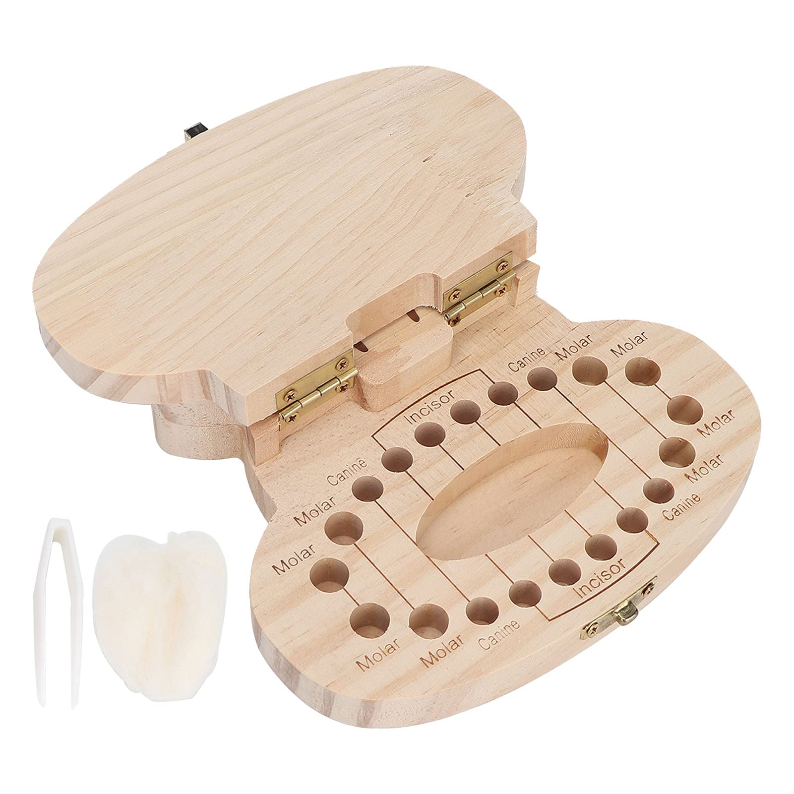?Perfect Gift?: Every deciduous tooth is unique for the baby, because they are the memorable moments of your kids' growth. Perfect gift for your kids in Children's Day, Birthday, Christmas, make them to cherish their teeth. ?Lock Design?: Solid wood crafted with undamaged durable mental buckle. It can lock the box tightly and keep baby's teeth from missing while moving. ?Using Tips?: Wooden box, corrosion resistant and durable, odorless just with a wood smell. Please put the deciduous teeth in the boiling water for 5 mins to sterilize, and make sure get it dry before put it into the teeth box.Using tweezers and cotton, you can easily and hygienically put your teeth in the box. ?A Home for Deciduous Teeth?: A meaningful thing to keep teeth, because every deciduous tooth is unique to the child. Each tooth has a hole corresponding to the holder and can write specific dates of tooth drop, it makes a lot of sense.Collect your baby's teeth and give your baby a wonderful childhood memories. You can write the baby information on with pens. ?High Quality Material?: Made from natural wood and do not contain any chemicals, suitable for long term dental storage.