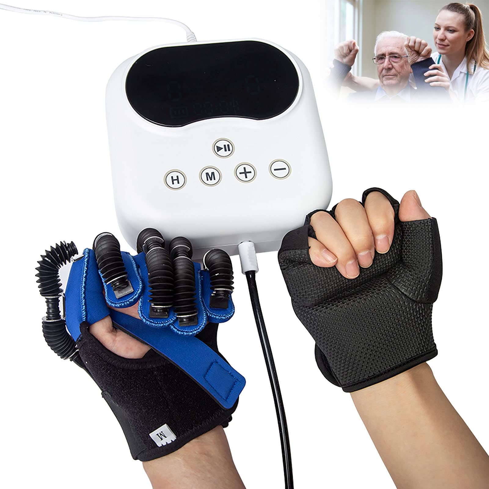 Description - Patients with assistive functions can rebuild their hand functions through exercise and then regain the ability to take care of themselves in daily life. - Polymer soft gloves, a variety of flexible polymer materials, three-dimensional cutting, suitable for the human hand, flexible hand drive, simple and convenient. - Small and convenient design, wearable, independent operation and maintenance. - Easy to operate, simple and efficient rotation control. Application of rehabilitation robot gloves. Crush injuries and other hand injuries. Torn tendons and or ligaments and other tendon injuries. Peripheral nerve and other neurological disorders. Fractures and dislocations. Arthritis or tendonitis Carpal tunnel syndrome Dupuytren's contracture. Post-stroke rehabilitation, etc. Specification Product name: Finger rehabilitation massage training equipment for stroke hemiplegia. Weight: 2kg Function: Finger rehabilitation training, contracture stiffness correction, wrist joint correction Packing list Rehabilitation gloves 1 Host 1 Mirror glove 1 Packing bag 1?Help self-repair?The simultaneous movement of both hands can activate the mirror neurons and copy the normal neural pathways from the hand to the affected part, thus promoting the brain's autonomous recovery. ?Adjustable strength?Adjustable strength according to your specific situation, no matter how much force you have, within the safety range, no need to worry about the strength. ?Rehabilitation robot gloves for people?finger flexion spasticity, cerebral palsy, post-stroke caused by finger dysfunction, long working hours to restore the dual function of the fingers and hands. ?Rehabilitation robot gloves have several modes?Passive mode and mirror mode allows the trained hand to learn the movements of other hands. ?Material of rehabilitation robot gloves?soft polymer gloves, a variety of flexible polymer materials, three-dimensional cutting, suitable for human hands, flexible air hand drive, simple and convenient.