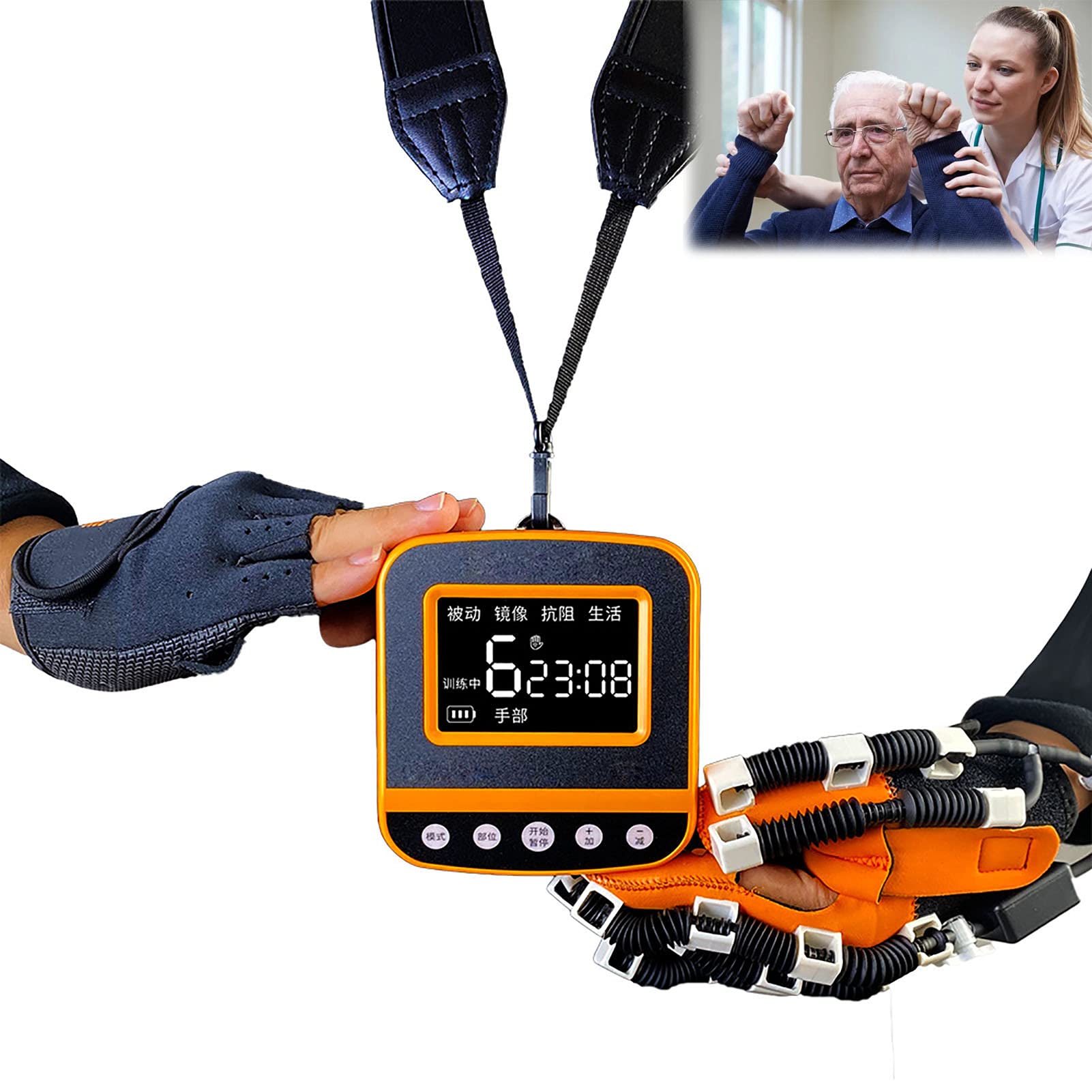 Description. - Patients with assistive functions can rebuild hand functions through exercise, and then restore the self-care ability of daily life. - Polymer soft gloves, a variety of flexible polymer materials, three-dimensional cutting, suitable for human hand, flexible air hand drive, simple and convenient. - Small and convenient design, wearable, independent operation and maintenance. - Easy to operate, simple and efficient rotation control. Application of robotic rehabilitation gloves. Crush injuries and other hand injuries. Torn tendons and or ligaments and other tendon injuries. Peripheral nerve and other neurological disorders. Fractures and dislocations. Arthritis or tendonitis Carpal tunnel syndrome Dupuytren's contracture. Post-stroke rehabilitation, etc. Specification Product name: Finger rehabilitation massage training equipment for stroke hemiplegia. Weight: 3kg Function: Finger rehabilitation training, contracture stiffness correction, wrist joint correction Kit included. Packing list Host 1 Rehabilitation robot gloves 1 Mirror glove 1?Help self-repair?. Simultaneous movement of both hands can activate mirror neurons, replicating normal neural pathways from the hand to the affected area, thus promoting autonomous brain recovery. ?Adjustable strength?. Adjustable strength according to your specific situation, no matter how strong you are, within the safety range, no need to worry about the strength. [Rehabilitation robot gloves for people]: finger flexion spasm, cerebral palsy, finger dysfunction caused by stroke sequelae, long working hours can restore the dual function of fingers and hands. [Rehabilitation robot gloves have several modes]. Passive mode and mirror mode allows the trained hand to learn the movements of other hands. [Material of rehabilitation robot gloves]: soft polymer gloves, a variety of flexible polymer materials, three-dimensional cutting, suitable for human hands, flexible air hand drive, simple and convenient.