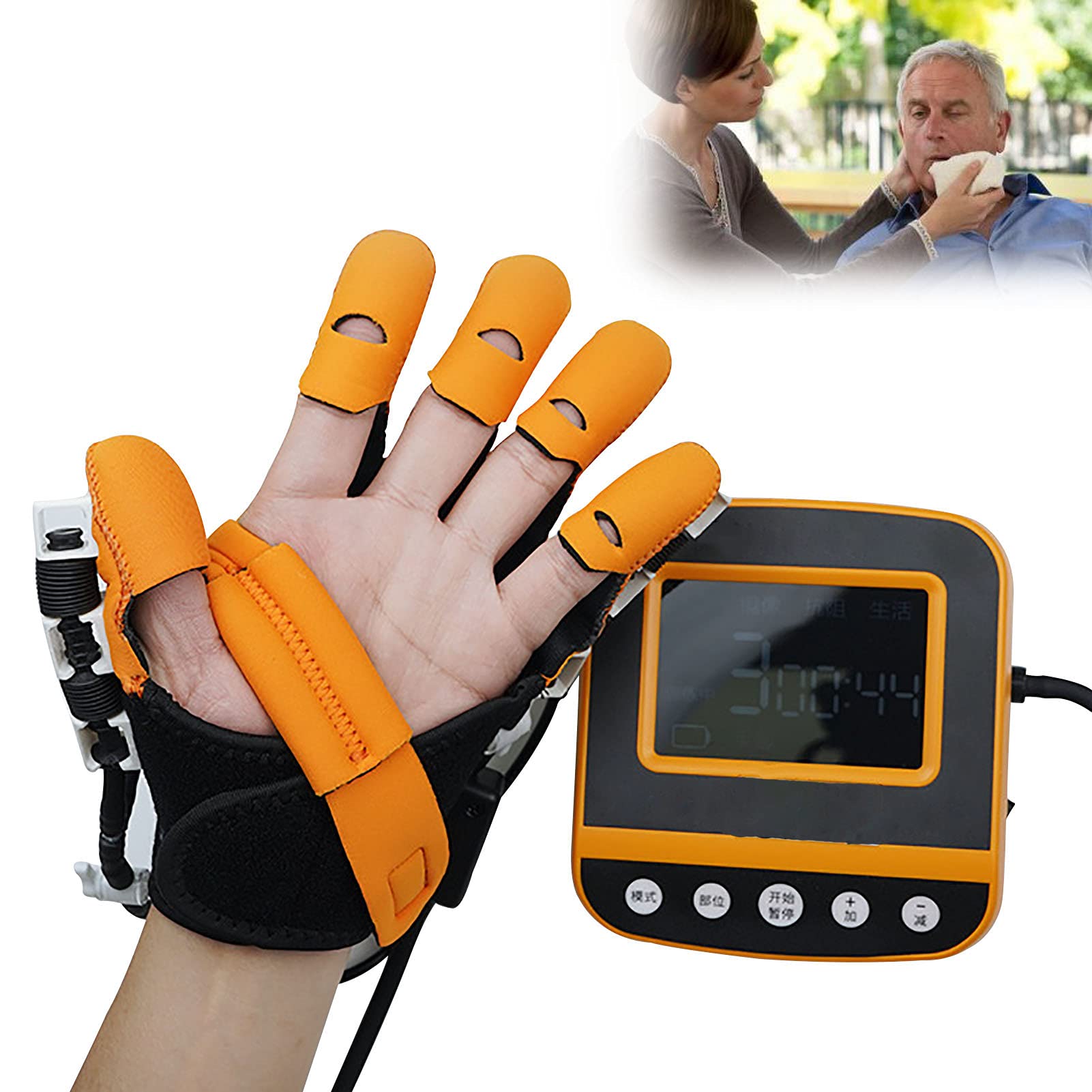 Description - Patients with assistive functions can rebuild hand functions through exercise, and then restore the self-care ability of daily life. - Polymer soft gloves, a variety of flexible polymer materials, three-dimensional cutting, suitable for human hand, flexible air hand drive, simple and convenient. - Small and convenient design, wearable, independent operation and maintenance. - Easy to operate, simple and efficient rotation control. Application of robotic rehabilitation gloves. Crush injuries and other hand injuries. Torn tendons and/or ligaments and other tendon injuries. Peripheral nerve and other neurological disorders. Fractures and dislocations. Arthritis or tendonitis Carpal tunnel syndrome Dupuytren's contracture. Post-stroke rehabilitation, etc. Specification Product name: Finger rehabilitation massage training equipment for stroke hemiplegia. Weight: 3kg Function: Finger rehabilitation training, contracture stiffness correction, wrist joint correction Kit included Packing list Host * 1 Rehabilitation robot gloves * 1 Mirror glove * 1?Help self-repair?Simultaneous movement of both hands can activate mirror neurons, replicating normal neural pathways from the hand to the affected area, thus promoting autonomous brain recovery. ?Adjustable strength?Adjustable strength according to your specific situation, no matter how strong you are, within the safety range, no need to worry about the strength. ?Rehabilitation robot gloves for people?finger flexion spasm, cerebral palsy, finger dysfunction caused by stroke sequelae, long working hours can restore the dual function of fingers and hands. ?Rehabilitation robot gloves have several modes?Passive mode and mirror mode allows the trained hand to learn the movements of other hands. ?Material of rehabilitation robot gloves?soft polymer gloves, a variety of flexible polymer materials, three-dimensional cutting, suitable for human hands, flexible air hand drive, simple and convenient.