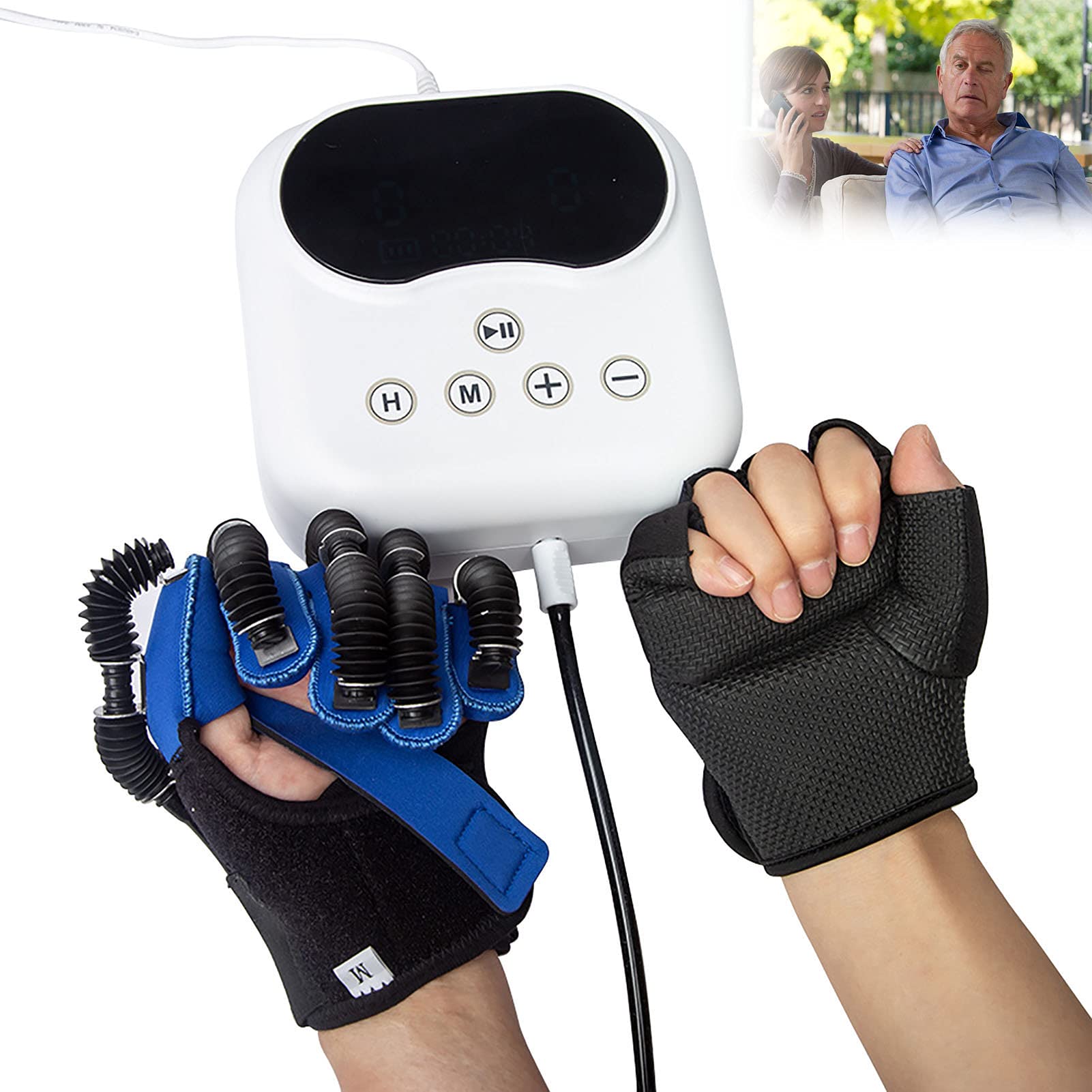 Description - Patients with assistive functions can rebuild hand functions through exercise, and then restore the self-care ability of daily life. - Polymer soft gloves, a variety of flexible polymer materials, three-dimensional cutting, suitable for human hand, flexible air hand drive, simple and convenient. - Small and convenient design, wearable, independent operation and maintenance. - Easy to operate, simple and efficient rotation control. Application of robotic rehabilitation gloves. Crush injuries and other hand injuries. Torn tendons and or ligaments and other tendon injuries. Peripheral nerve and other neurological disorders. Fractures and dislocations. Arthritis or tendonitis Carpal tunnel syndrome Dupuytren's contracture. Post-stroke rehabilitation, etc. Specification Product name: Finger rehabilitation massage training equipment for stroke hemiplegia. Weight: 2kg Function: Finger rehabilitation training, contracture stiffness correction, wrist joint correction Kit included Packing list Host 1 Rehabilitation robot gloves 1 Mirror glove 1?Help self-repair?Simultaneous movement of both hands can activate mirror neurons, replicating normal neural pathways from the hand to the affected area, thus promoting autonomous brain recovery. ?Adjustable strength?Adjustable strength according to your specific situation, no matter how strong you are, within the safety range, no need to worry about the strength. ?Rehabilitation robot gloves for people?finger flexion spasm, cerebral palsy, finger dysfunction caused by stroke sequelae, long working hours can restore the dual function of fingers and hands. ?Rehabilitation robot gloves have several modes?Passive mode and mirror mode allows the trained hand to learn the movements of other hands. ?Material of rehabilitation robot gloves?soft polymer gloves, a variety of flexible polymer materials, three-dimensional cutting, suitable for human hands, flexible air hand drive, simple and convenient.