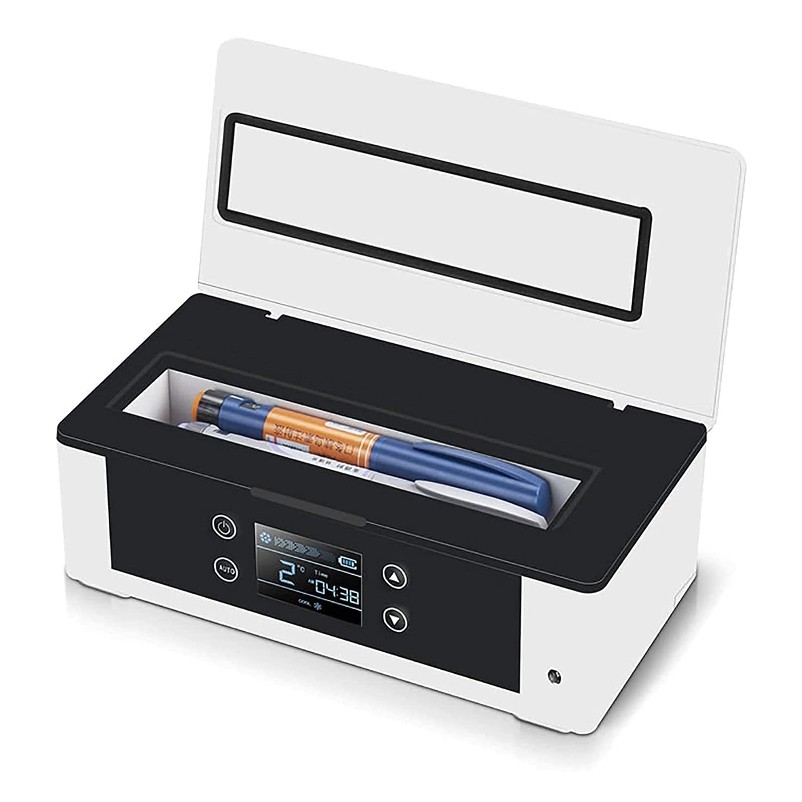 Insulin refrigerated box is designed to provide a convenient and affordable way to keep medicines at a safe temperature, it is suitable for refrigeration of insulin, interferon, growth hormone, vaccine, drops eye and other drugs. High-definition LED touch screen, high-definition fonts, even the elderly at home can easily operate. The scientifically designed refrigeration box cover adopts double-layer sealing ring, combined with recessed inner groove, which improves the sealing effect of the refrigerator and keeps it cool for a long time. Characteristics: Weight: 780g Refrigeration space: 190 45 45mm Dimensions: 240 120 80mm Capacity (lithium battery): 10200mah Refrigeration temperature: 2-8 ? (under ambient temperature 30 ?) Package Included: 1x refrigerated insulin box 1x 10200mAh lithium battery 1x portable bag 1x car charger 1x USB charger 1x USB charging cable To note: It is recommended to remove the built-in battery if you use the refrigerated insulin box for a long time at home. If you have any questions, please feel free to contact us and message us. We will contact you within 24 hours and provide you with a satisfied solution.?The back of the fuselage is designed with dual charging ports. Three charging methods, adapter charger, car charger and USB charger. You do not have to worry about charging, you can use it in your car travel, office, home and outdoor. ?Original imported chip, rapid cooling to 2-8?(ambient temperature 30 ). Large LCD display, shows the real-time and refrigeration temp clearly, and the noise is low.simple operation, even the elderly can easily operate. ?Max working time: 8 hours, keep your medicines at a safe temperature all the time,built-in 10200mah lithium battery. It is easy to carry, you can take it when traveling or going to work, can be carried on an airplane or train, travel, more convenient for travel. ?The insulin refrigerated box shell is made of medical ABS PE and is resistant to impact. The polyurethane foam applied provides strong prevention of outside-temperature but satisfactory insulation property. The inside of the box is made of aluminum alloy, which is oxidized to refrigerate the medicine quickly. ?The size inside the box is 190 45 45 mm, which can accommodate 3-5 insulin pen and 6-8 insulin, the box size is 236 120 80 mm. For you to solve the problem of cold storage of insulin, interferon, vaccine, eye drops, serum, growth hormone and other drugs when you go out.
