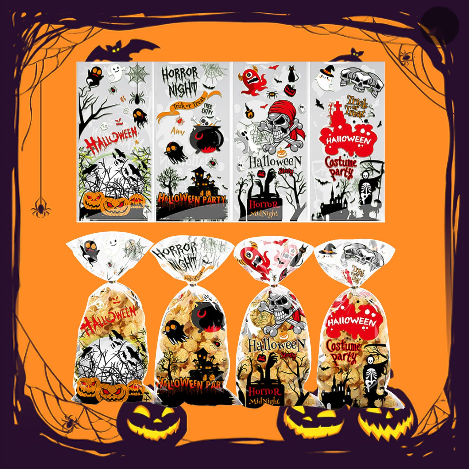ZZLBZN Halloween Bags for Sweets Halloween Sweets Bags Halloween Cellophane Bags Halloween Cookie Bags Halloween Sweets Bags for Halloween Party Favors