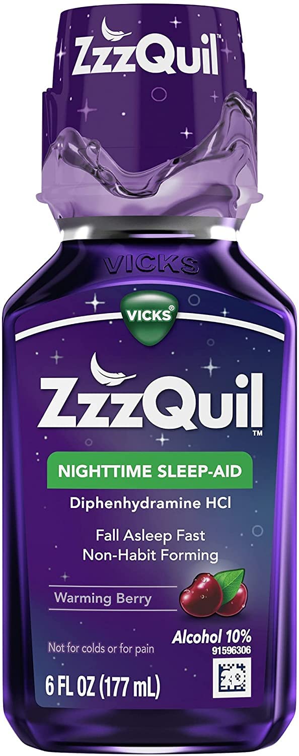 ZzzQuil Liquid Sleep Aid in Warming Berry Flavor is designed for occasional sleeplessness, helping you drift off in as little as 20 minutes when you need extra support at night. Formulated with diphenhydramine HCl, this non-habit-forming sleep-aid helps promote restful sleep so you can wake feeling refreshed and ready for the day ahead. Each 30 mL dose contains 50 mg of diphenhydramine HCl and should only be taken when you have enough time to get a full night's rest (7–8 hours). With a warming berry flavor and liquid format, ZzzQuil is easy to take and convenient when bedtime feels out of reach. NDC:37000-500-06 UPC:323900013964